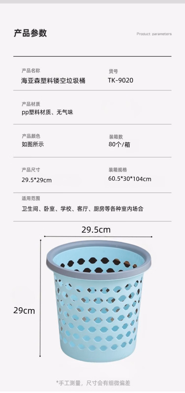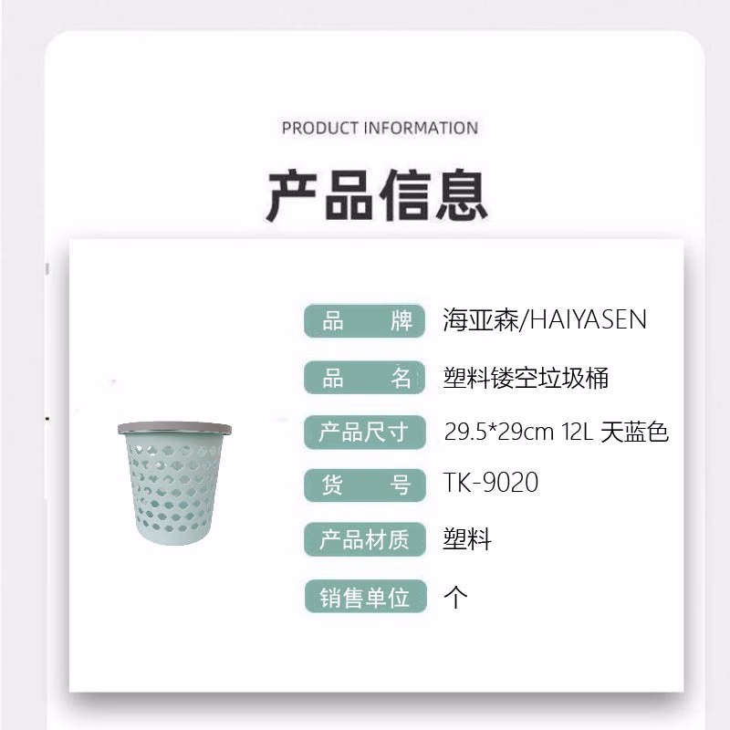 海亚森 TK-9020 29.5*29cm 12L 垃圾桶 (计价单位:个) 天蓝色