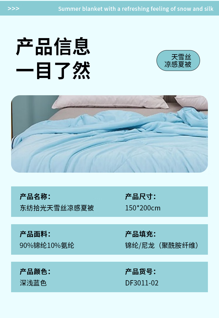 东纺拾光 DF3011-02 150*200cm天雪丝凉感夏被 被子 1.00 件/条 (计价单位:条) 深浅蓝色