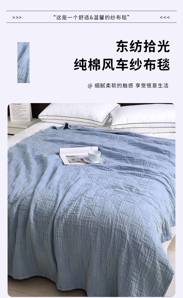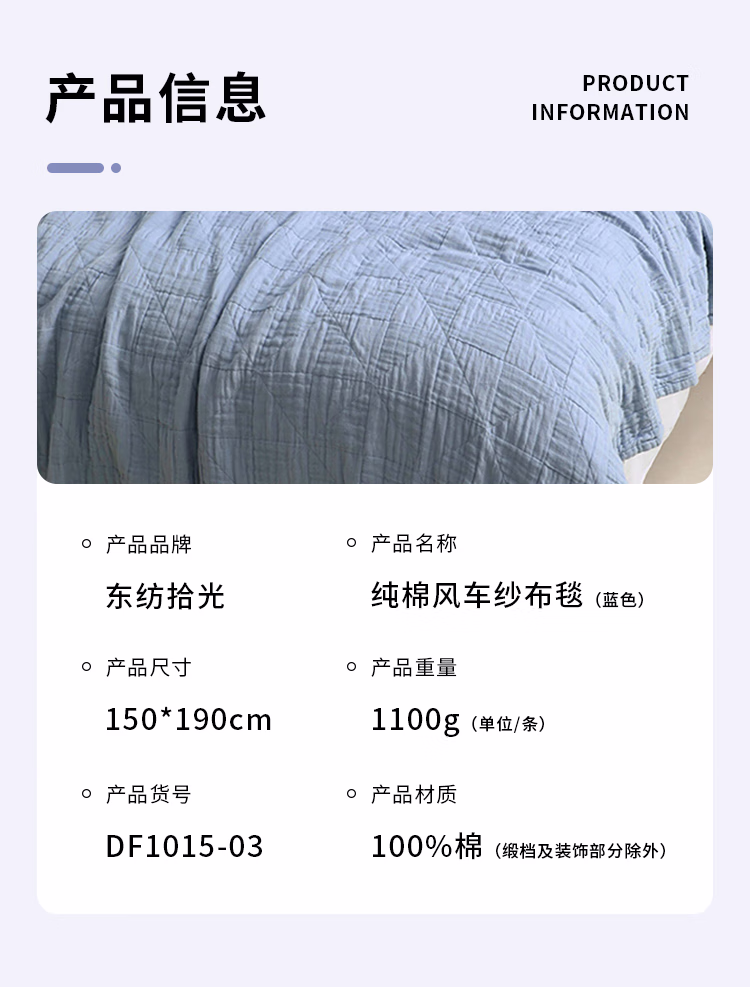 东纺拾光 DF1015-03 150*190cm纯棉风车纱布毯 毯子 1.00 件/条 (计价单位:条) 蓝色