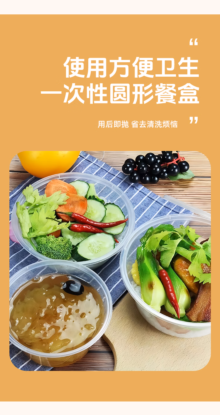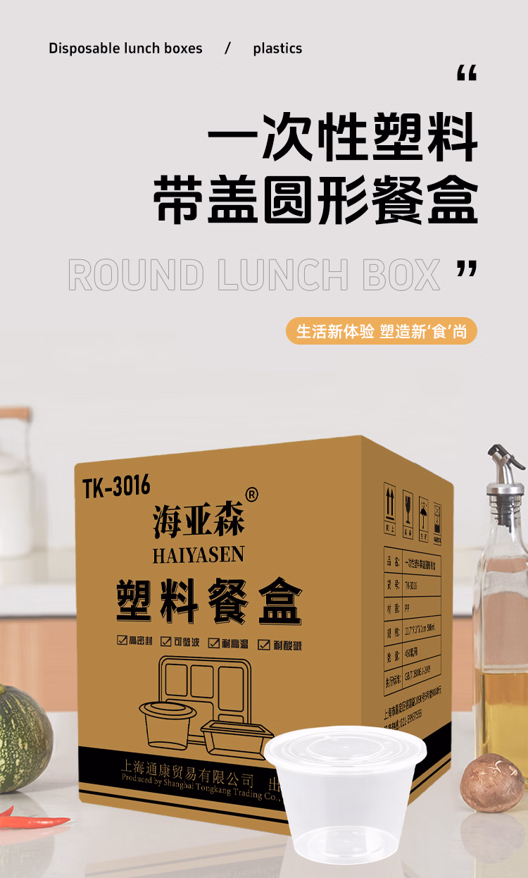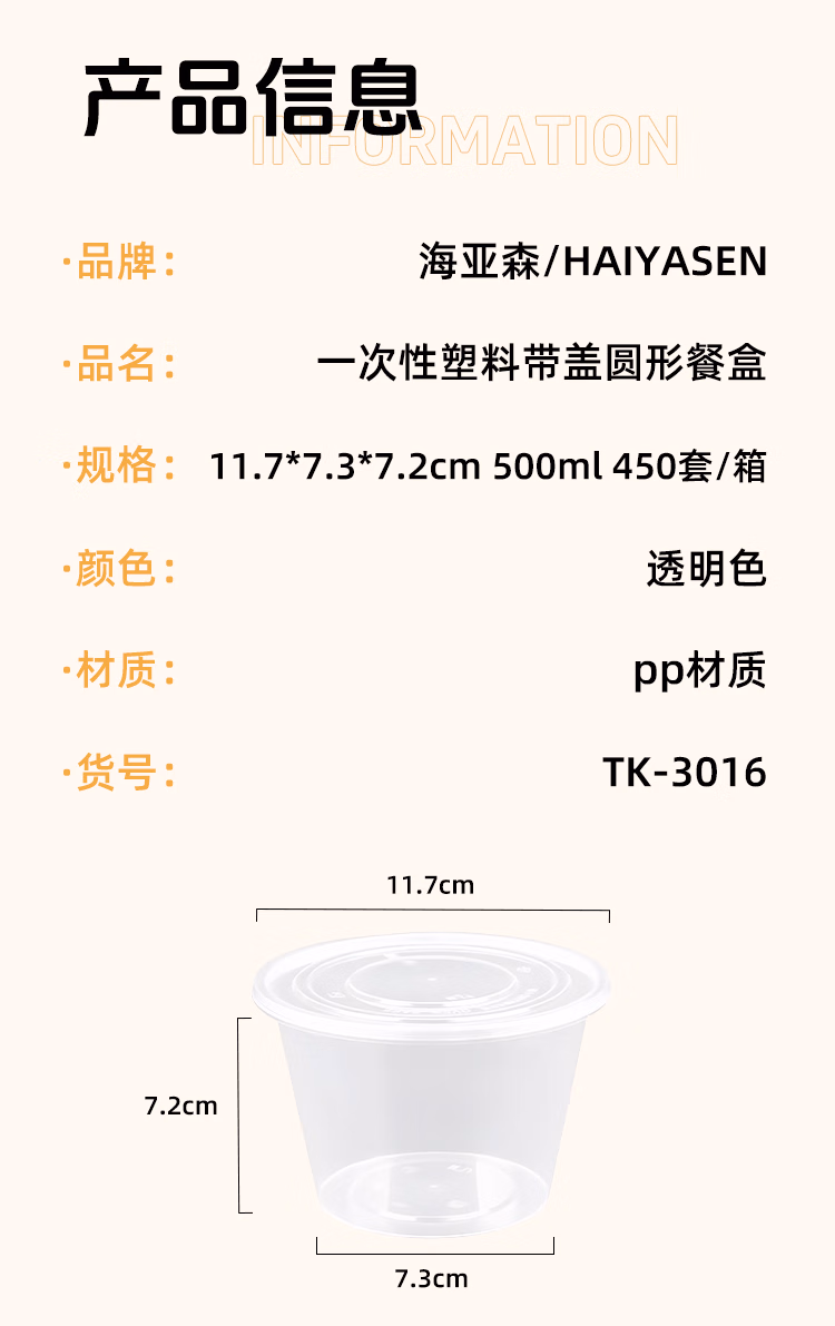 海亚森 TK-3016 11.8*8*8cm 500ml 一次性塑料带盖圆形餐盒 450.00 个/箱 (计价单位:箱) 透明色