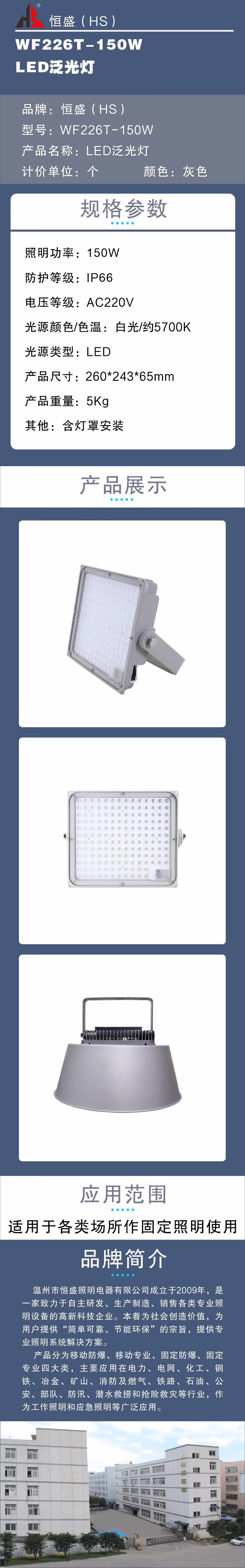 • 商品名称:恒盛(HS) WF226T-150W LED泛光灯 (计价单位:个) 灰色