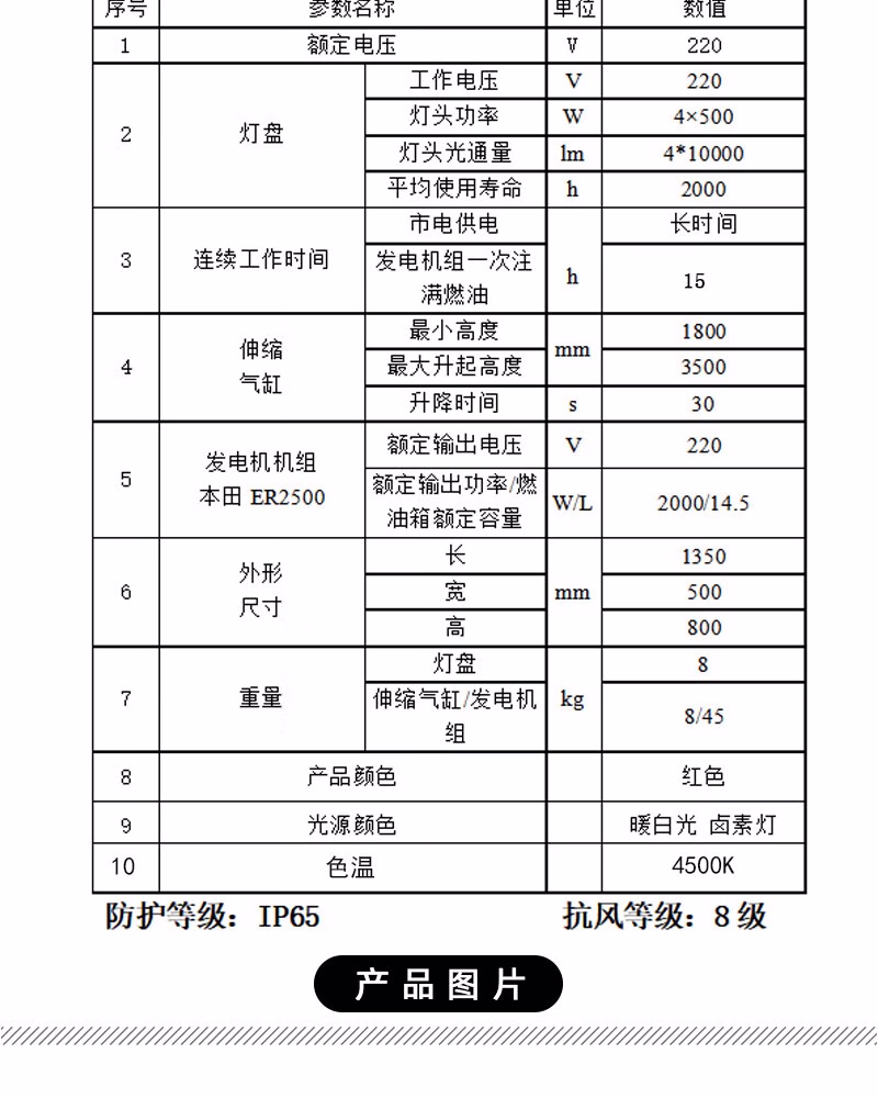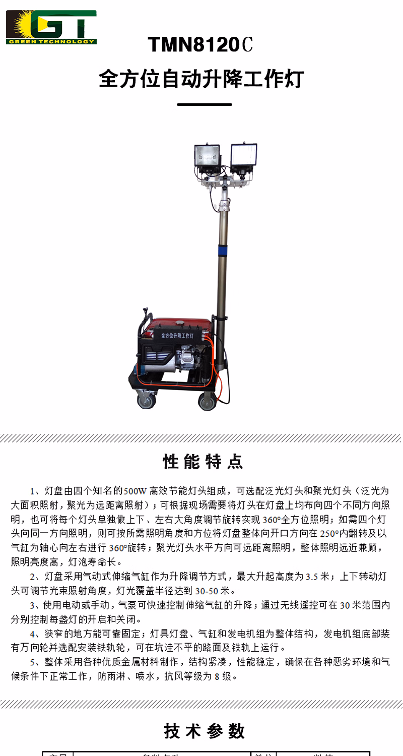 吉特(GT) TMN8120C,4*500W,IP65,电压:220V,暖白光,4500K,卤素灯 全方位自动升降工作灯 1.00 台/套 (计价单位:套) 红色