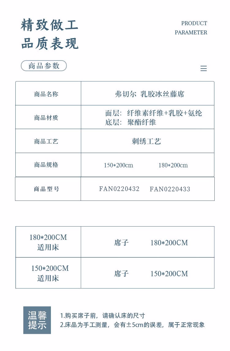 弗切尔珀榕 FAN0220433 180*200cm 时尚冰藤乳胶凉席三件套 1.00 件/套 (计价单位:套) 冰藤乳胶-灰