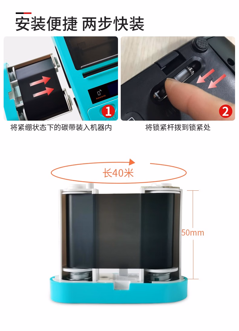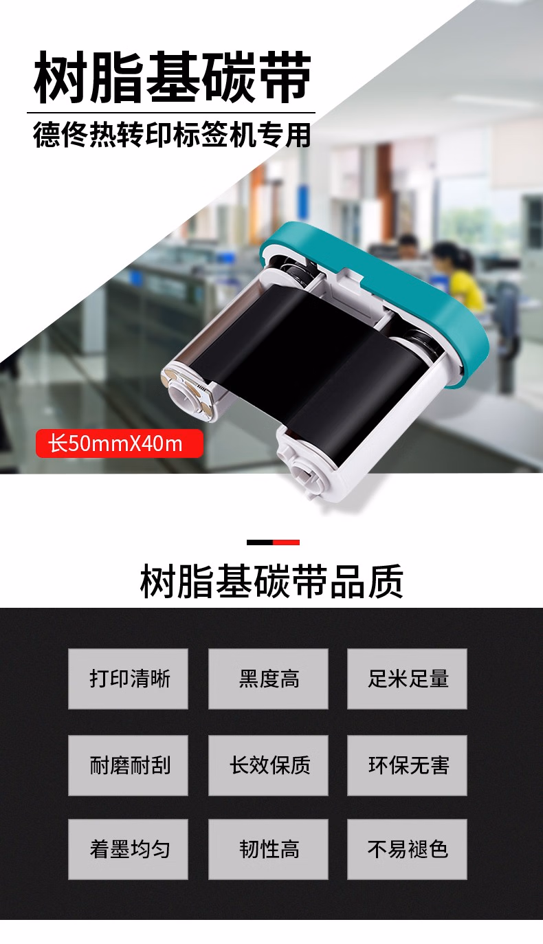 德佟 DTS50-30 50mm*40m 适用于德佟DT-670P标签打印机 色带 (计价单位:盒) 黑色