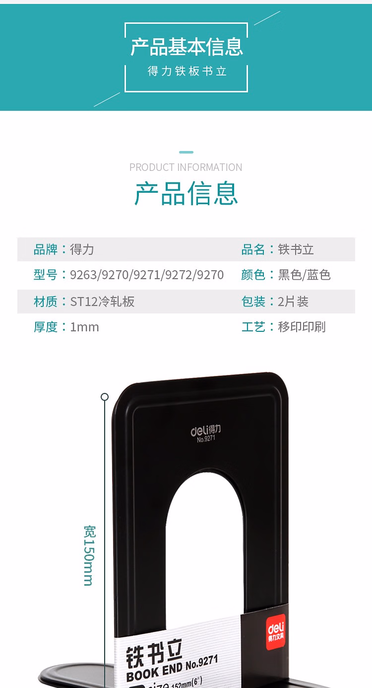 得力(deli) 78650 175mm高 书立架 2.00 个/付 (计价单位:付) 深灰色