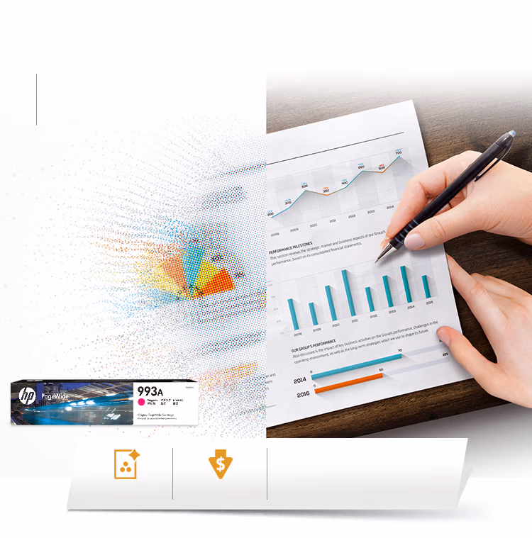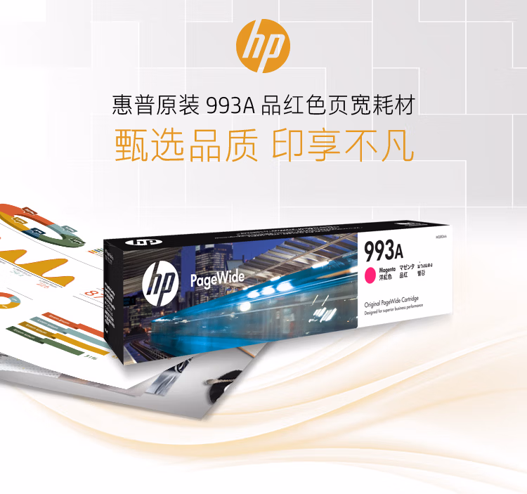 惠普原装 993A 品红色页宽耗材 *平均打印覆盖率基于ISO/IEC 24711 |