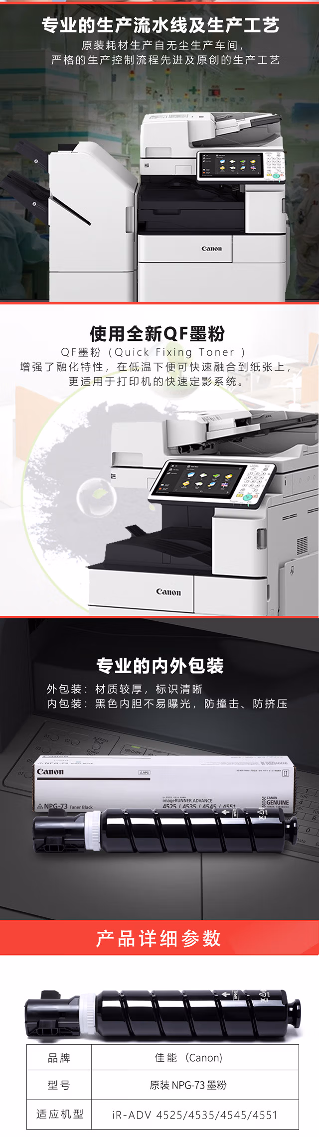 佳能(Canon) NPG-73 BK 42100页 适用复合机iR-ADV 4525 墨粉盒 1.00 只/支 (计价单位:支) 黑色