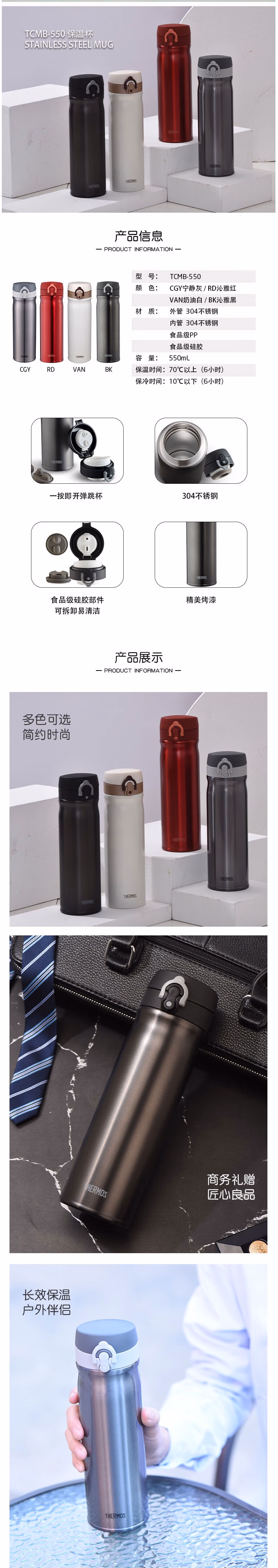 膳魔师(THERMOS) TCMB-550-CGY 550ml 不锈钢保温杯 (计价单位:个) 灰色