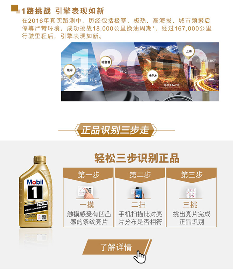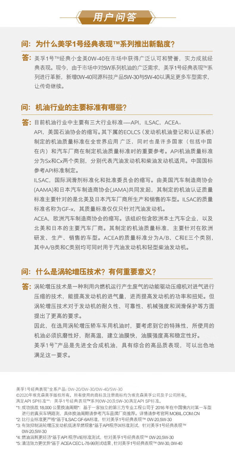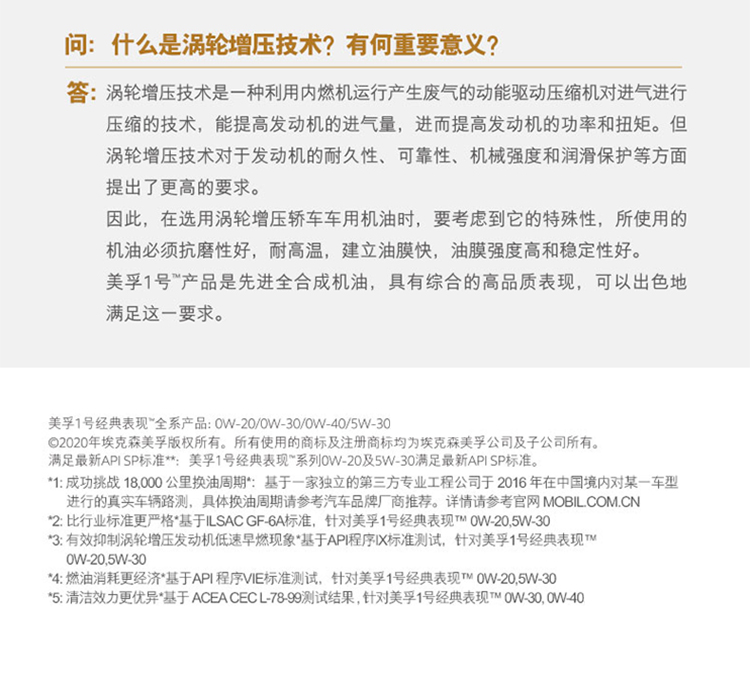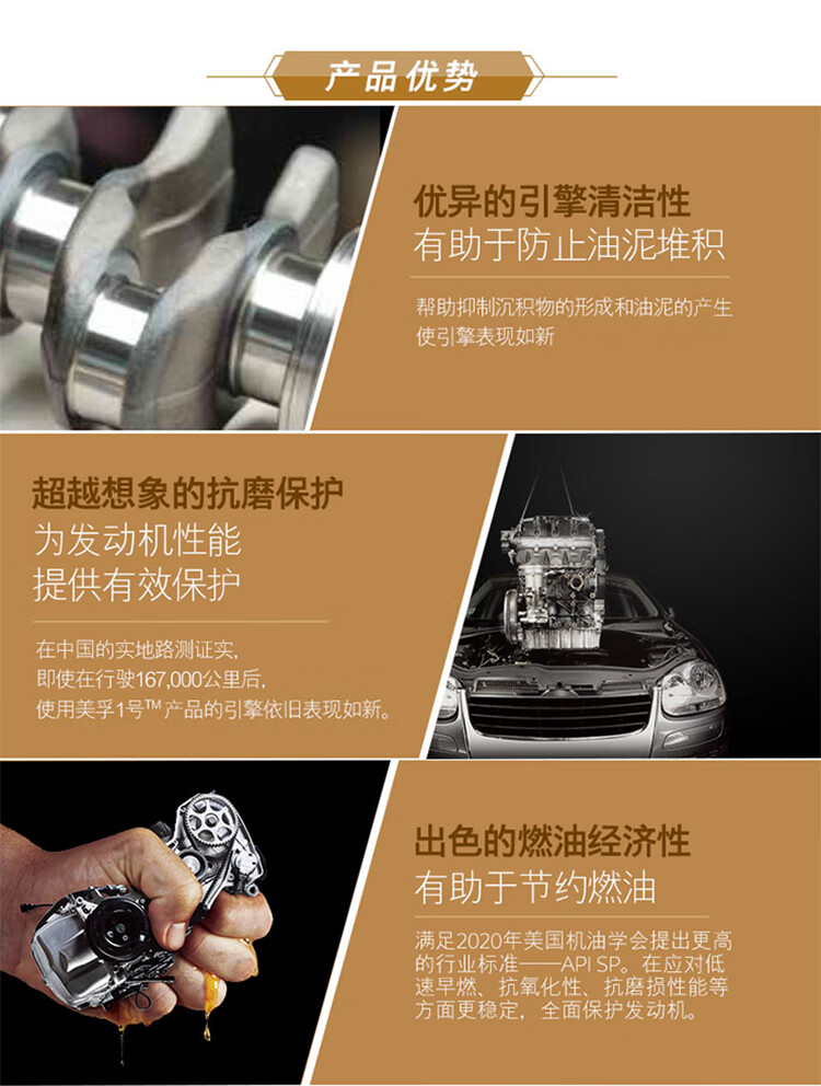 美孚(Mobil)金装美孚1号 全合成机油 5W-30 SP级 1L 汽车保养 单位:瓶
