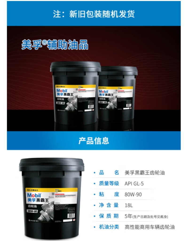 美孚(Mobil)美孚黑霸王齿轮油 80W-90 GL-5级 18L 汽车用品 单位:桶