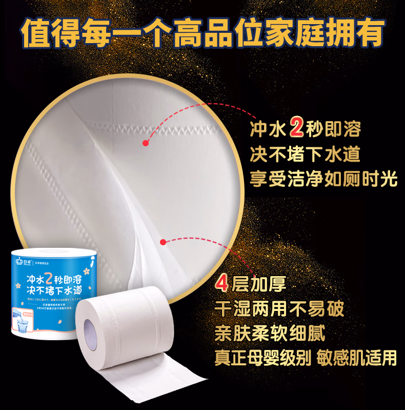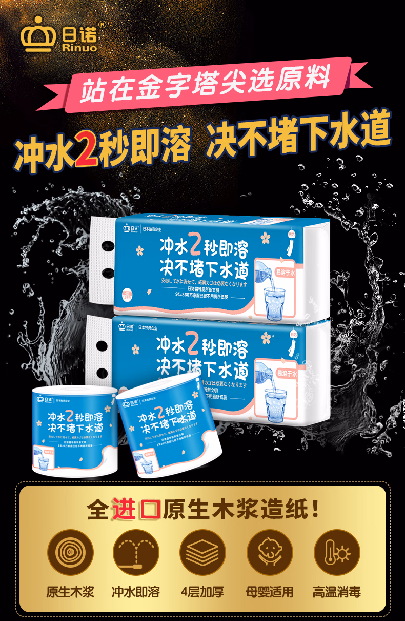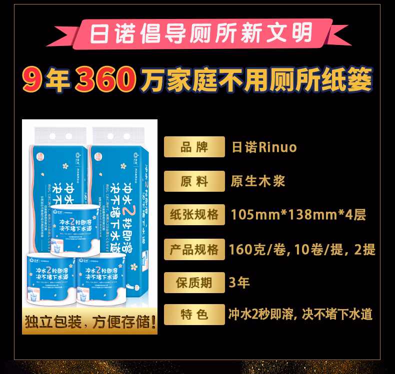日诺(Rinuo) 4层160克 10卷/提 可溶水有芯 卫生纸 2.00 提/组 (计价单位:组)
