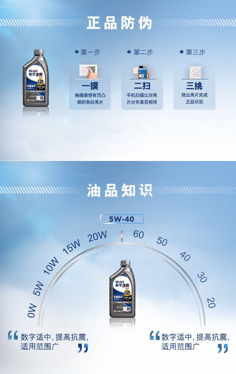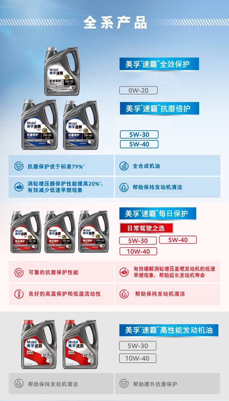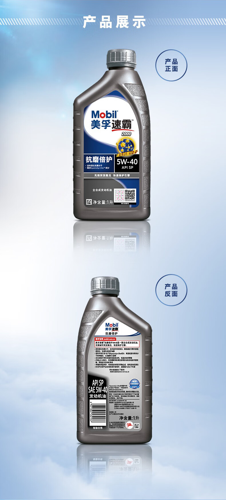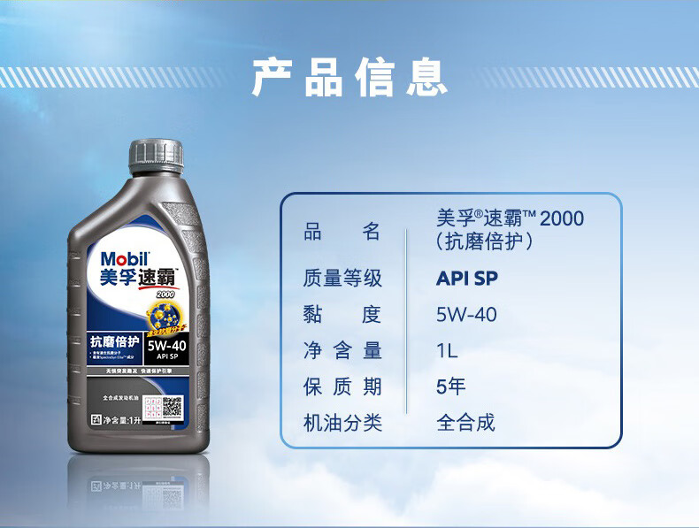 美孚(Mobil)美孚速霸2000抗磨倍护 全合成机油 5W-40 SP级 1L 汽车保养