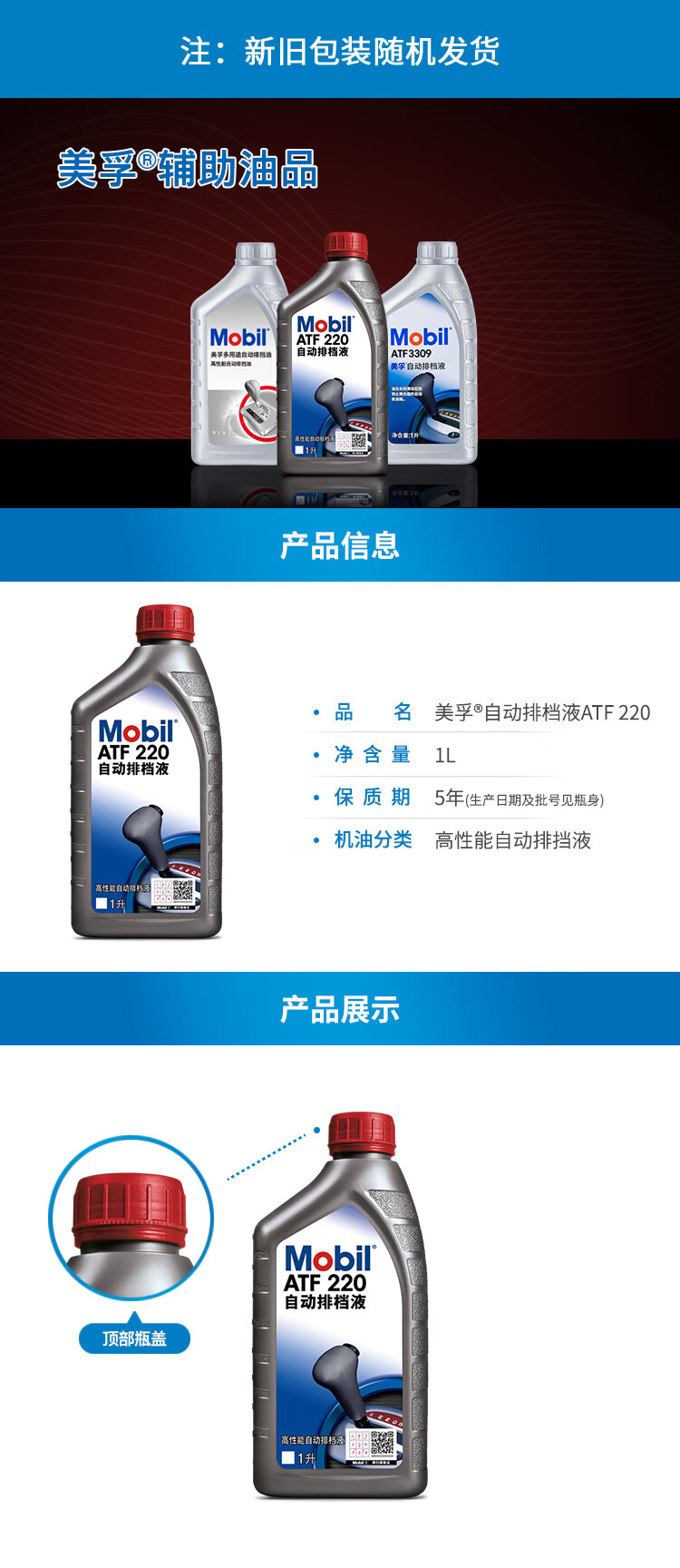 美孚(Mobil)自动变速箱油 ATF220 1L 汽车用品 单位:瓶