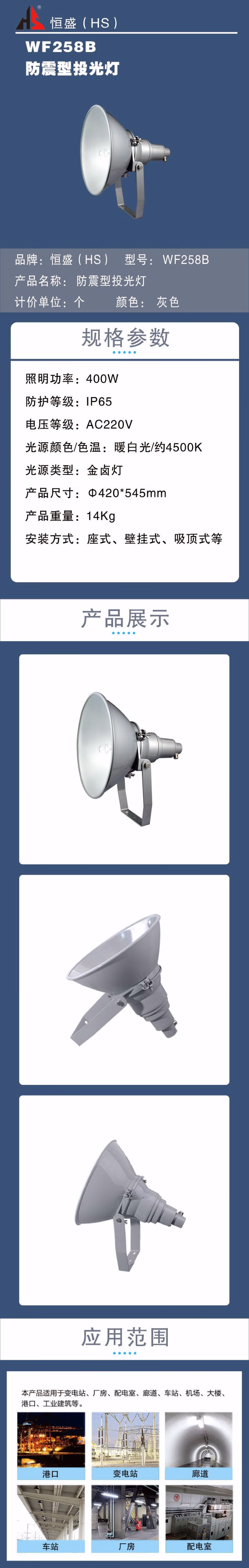 恒盛(HS) WF258B 400W IP65 电压等级:AC220V 暖白光/约4500K 金卤灯 防震型投光灯 (计价单位:个) 灰色