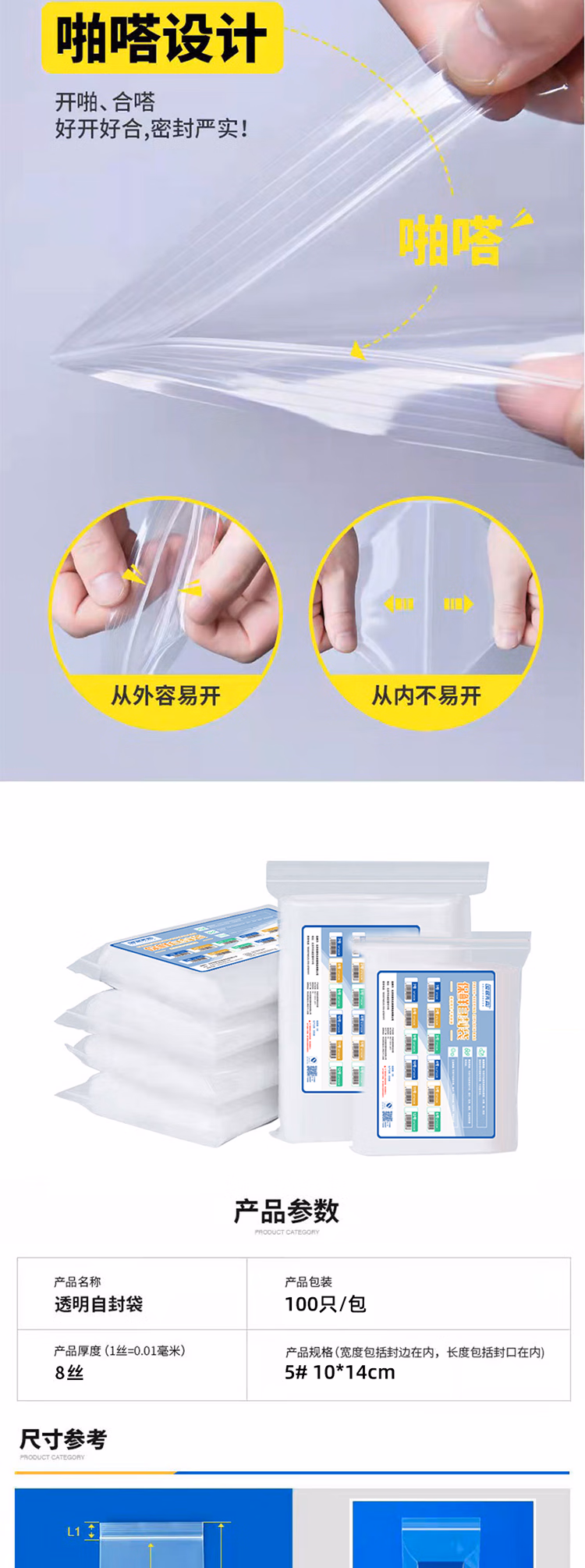 安居先森 5* 10*14cm 100只/包 自封袋塑料密封袋 100.00 个/包 (计价单位:包) 透明