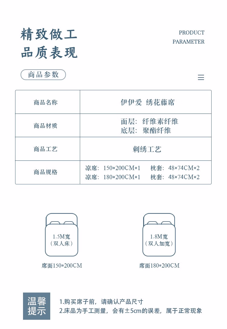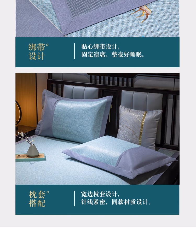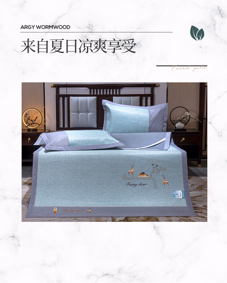 伊伊爱 XZ0AN02200006 /180*200cm艾草玻尼凉席藤席三件套 凉席 (计价单位:件) 一鹿有你-蓝