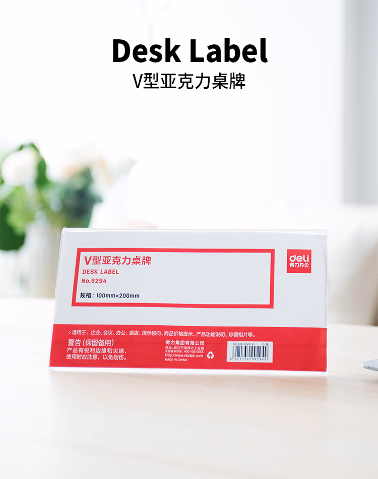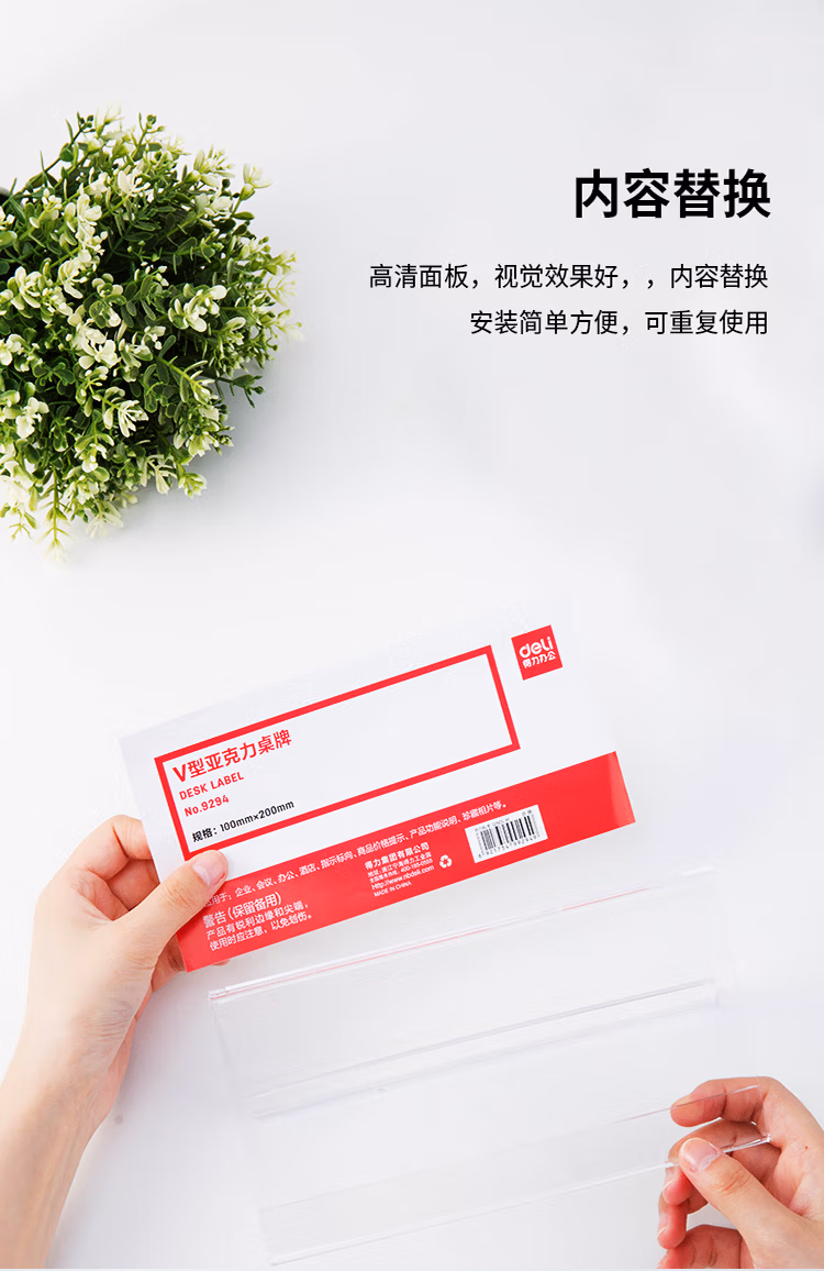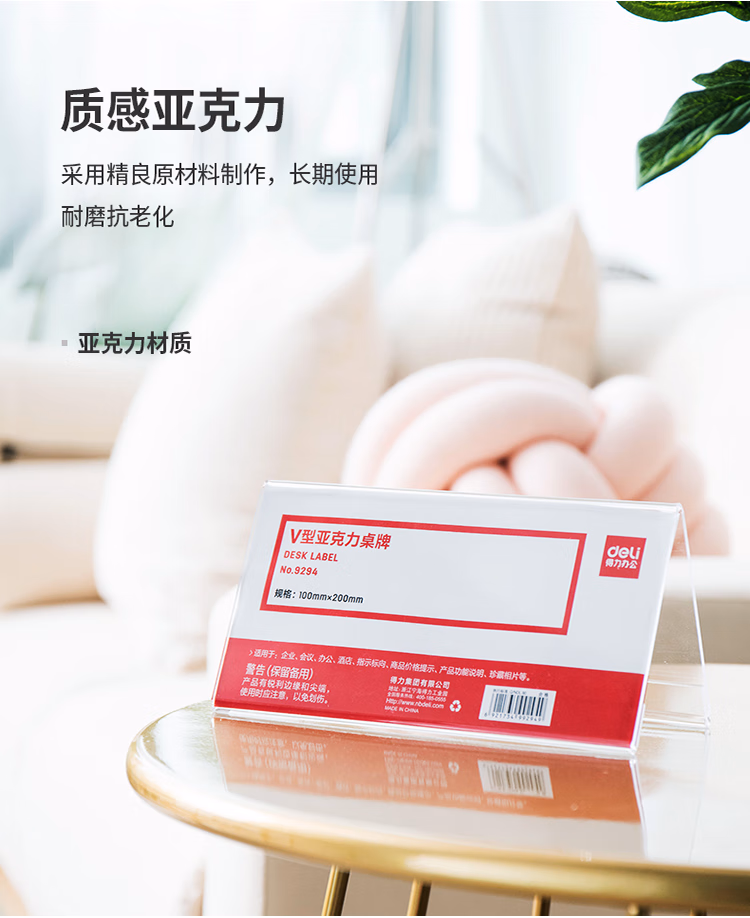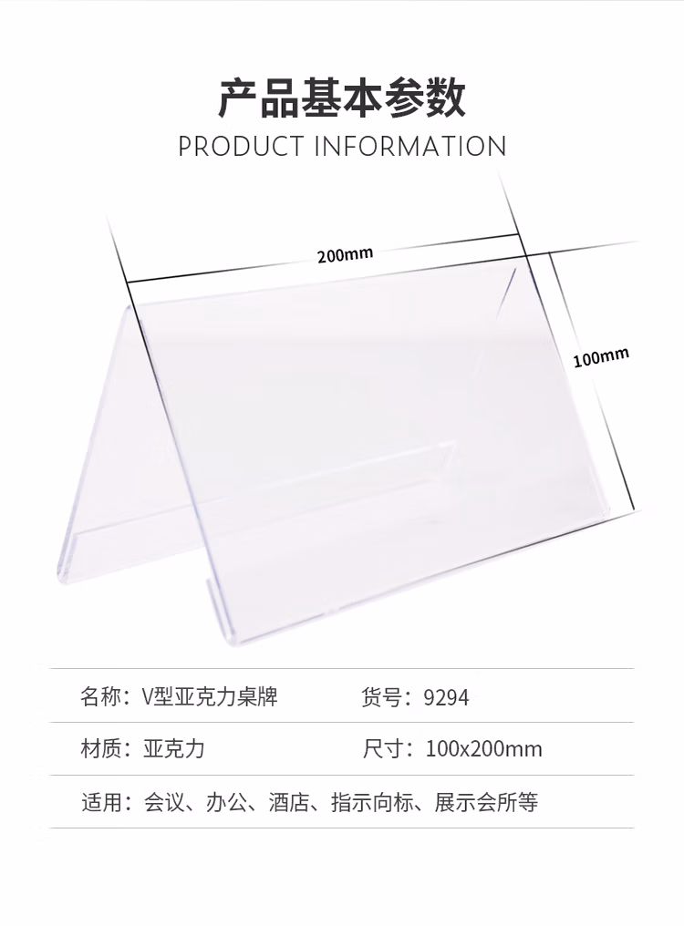 得力(deli) 9294 V型 亚克力 展示铭牌 (计价单位:个) 透明