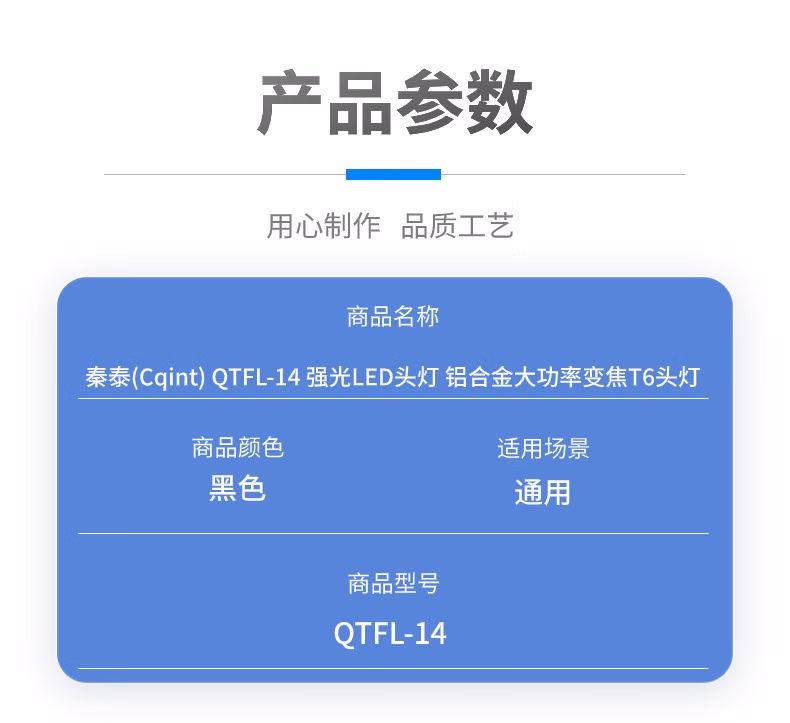 秦泰(Cqint) QTFL-14 铝合金大功率变焦T6头灯 3W DC3.7V 300流明 续航8小时 强光LED头灯 (计价单位:台) 黑色