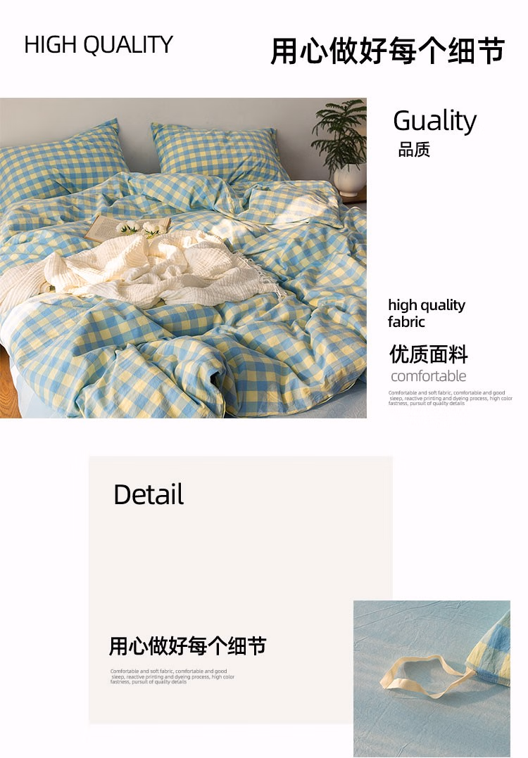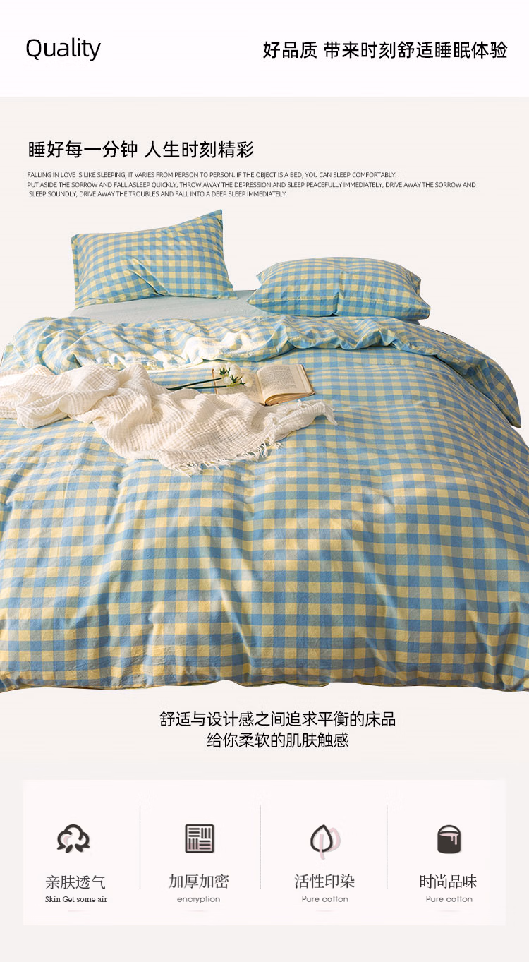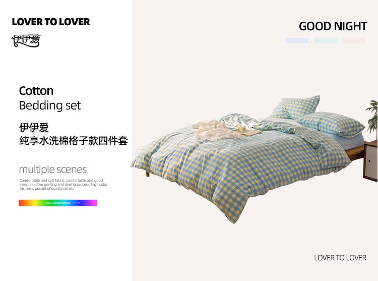 • 商品名称:伊伊爱纯爱水洗棉格子款四件套 200*230cm/TJ0SXM2301954