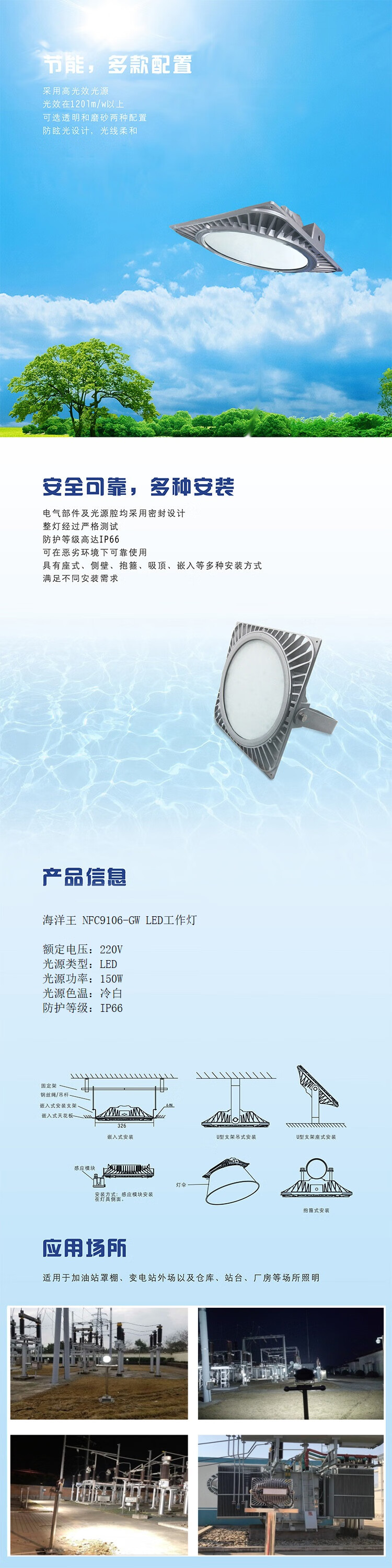 海洋王 NFC9106-GW 150W IP66 220V 冷白 LED LED工作灯 (计价单位:个) 银色