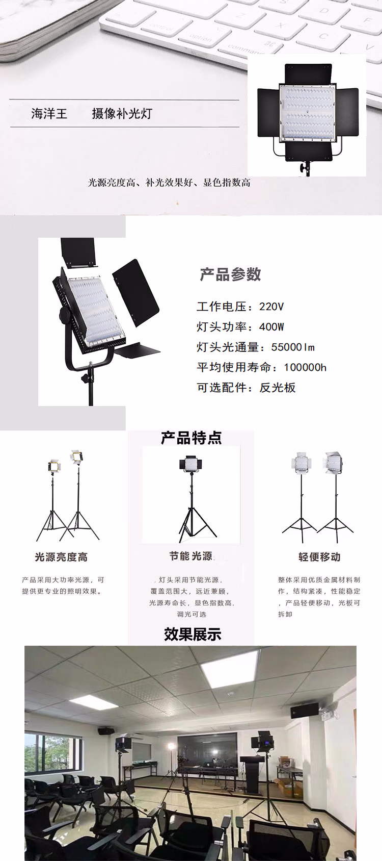 海洋王 OK9283GJ 400W摄像补光灯 摄像机配件 (计价单位:个) 银色