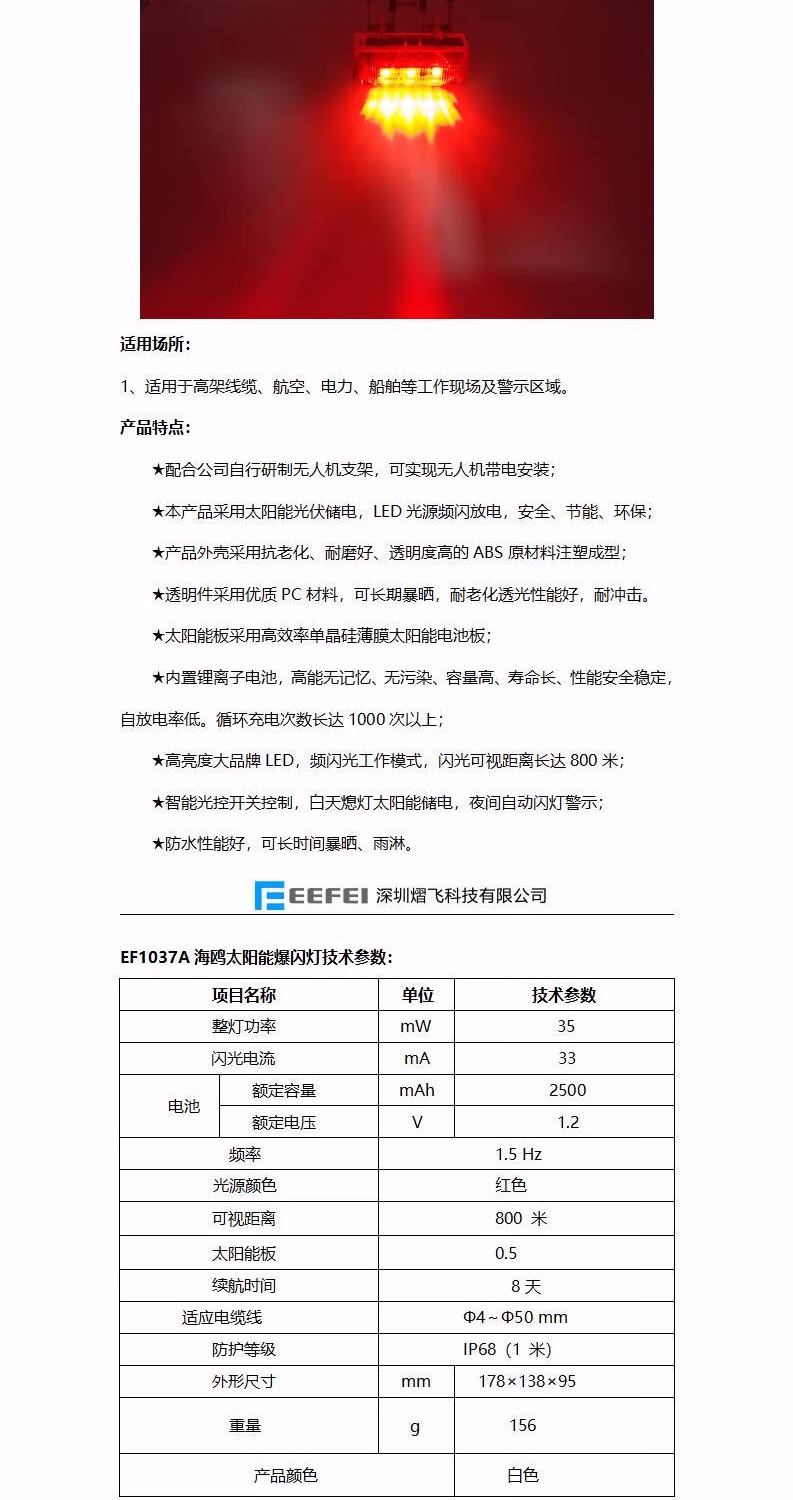 • 商品名称:EEEFEI 标志灯 海鸥太阳能爆闪灯 EF1037A 深圳熠飞