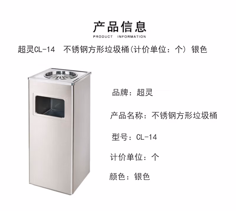 超灵 CL-14 不锈钢方形垃圾桶 垃圾桶 (计价单位:个) 银色