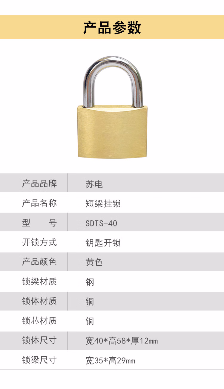 苏电 SDTS-40 挂锁 1.00 个/把 (计价单位:把) 金黄色