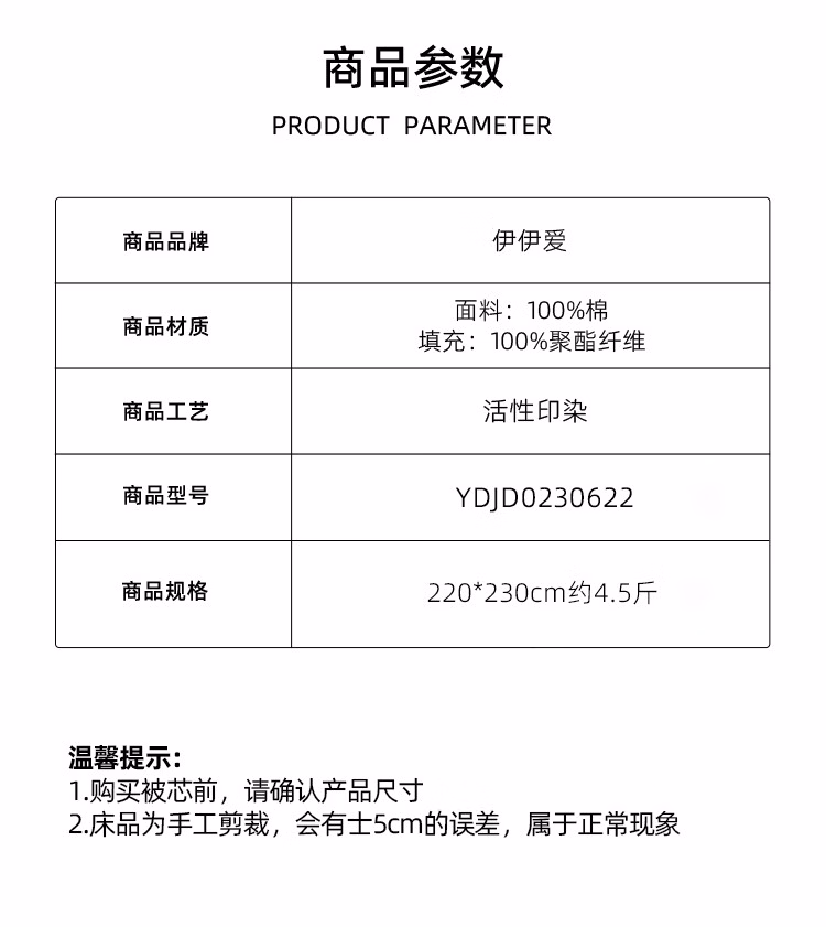 • 商品名称:伊伊爱全棉防羽布纯白夏被芯 白色 220*230cm/YDJD0230622