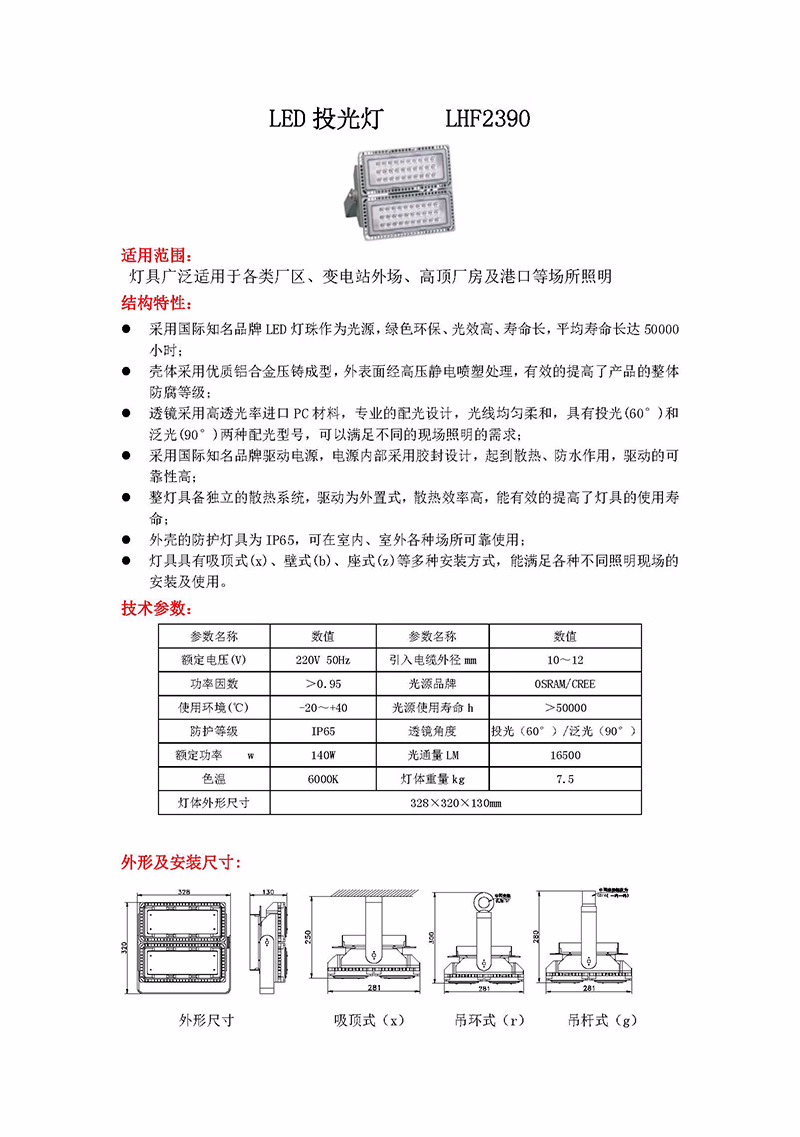 • 商品名称:LHF2390 LED投光灯 140W 冷白 220V IP65 (计价单位:套) 灰色
