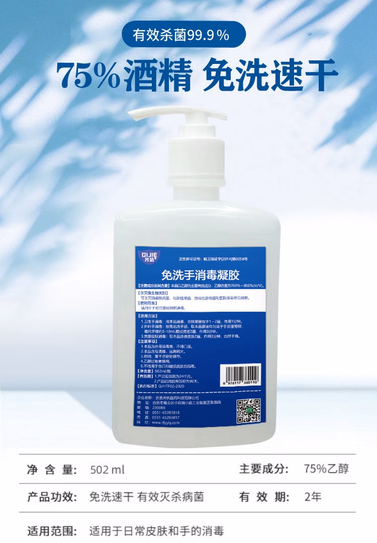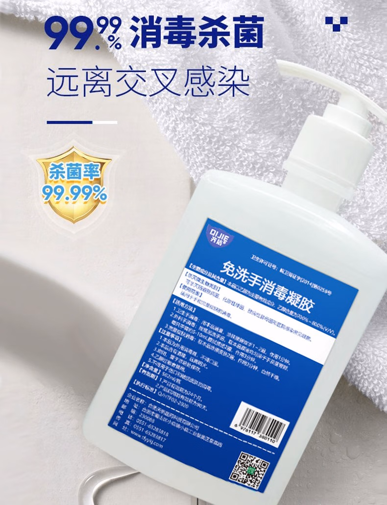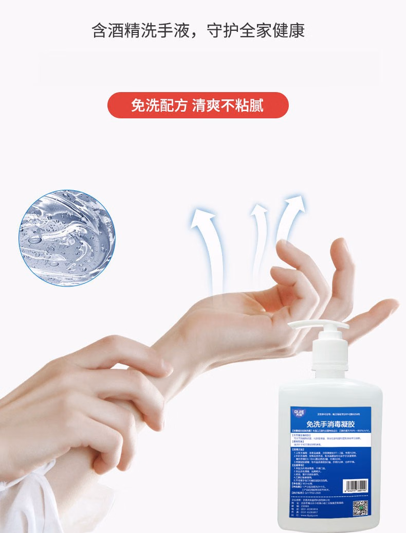• 商品名称:齐洁502ml75%酒精免洗手消毒凝胶免洗手消毒液免洗手凝胶(粮食酒精) 免洗消毒凝胶 502ml