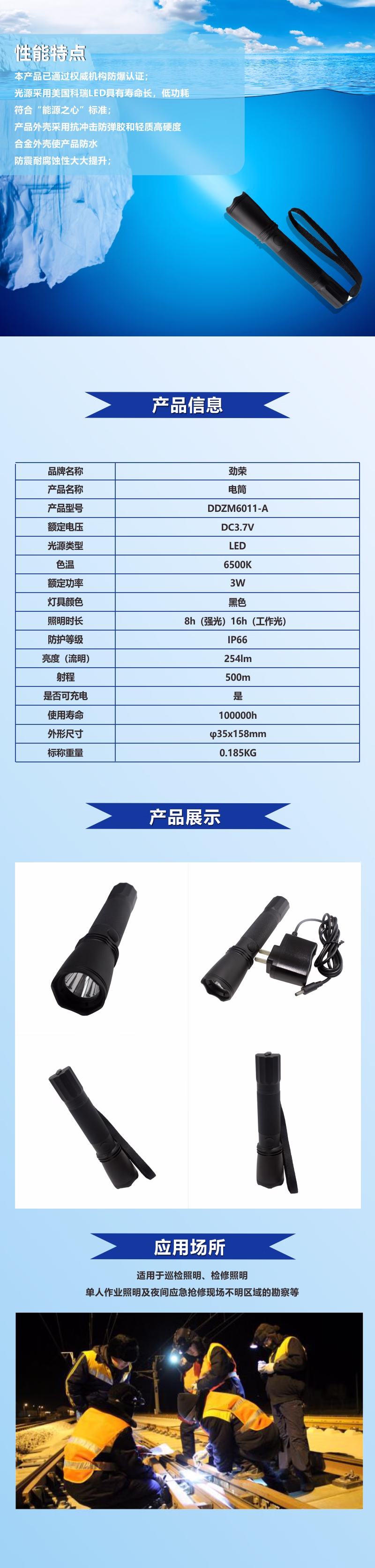 劲荣 DDZM6011-A 3.7V 3W 电筒 (计价单位:个) 黑色