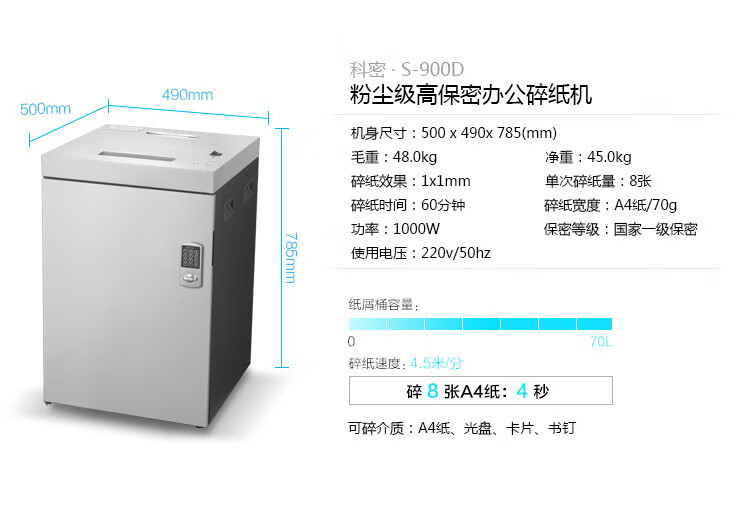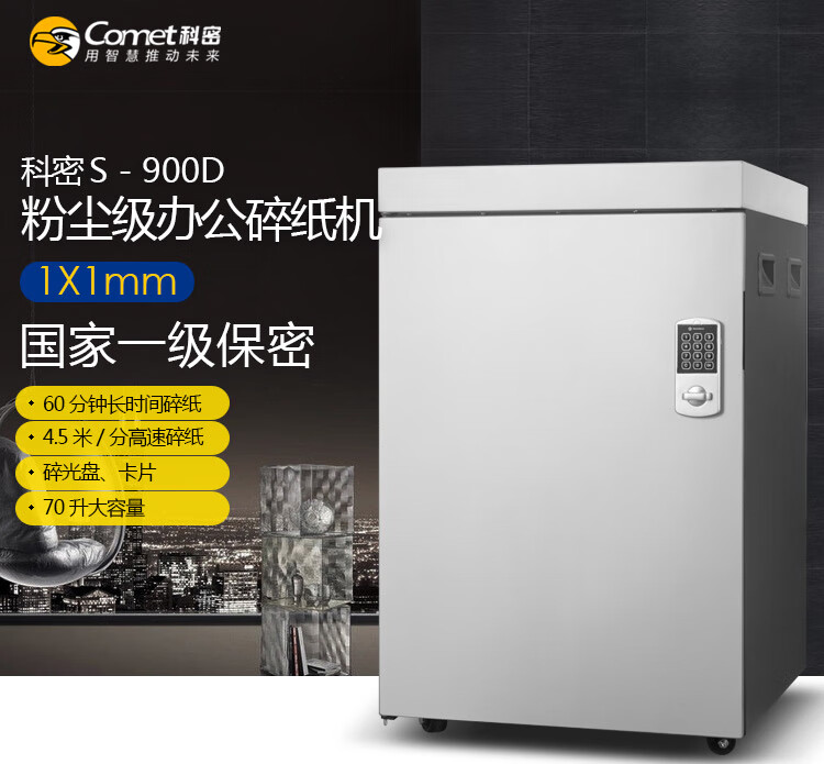 科密(comet) S-900D 德国7级高保密专业销毁碎纸机 大型办公商用高速粉碎机(1*1mm 60分钟 70L 碎卡光盘 )