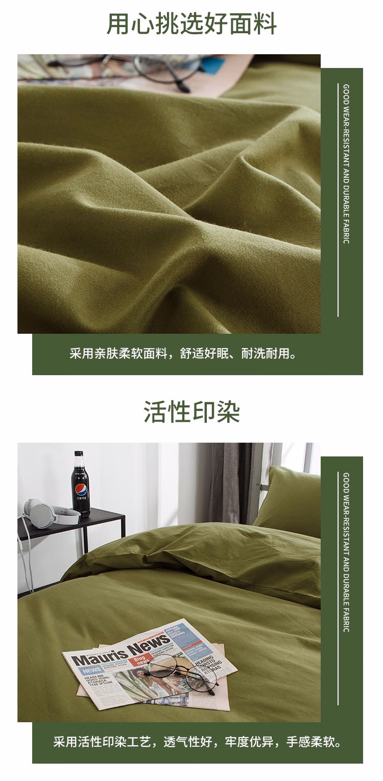 • 商品名称:伊伊爱 军绿内务值班室三件套1.2M床 军绿色 150*200cm/TJ0JD02100871