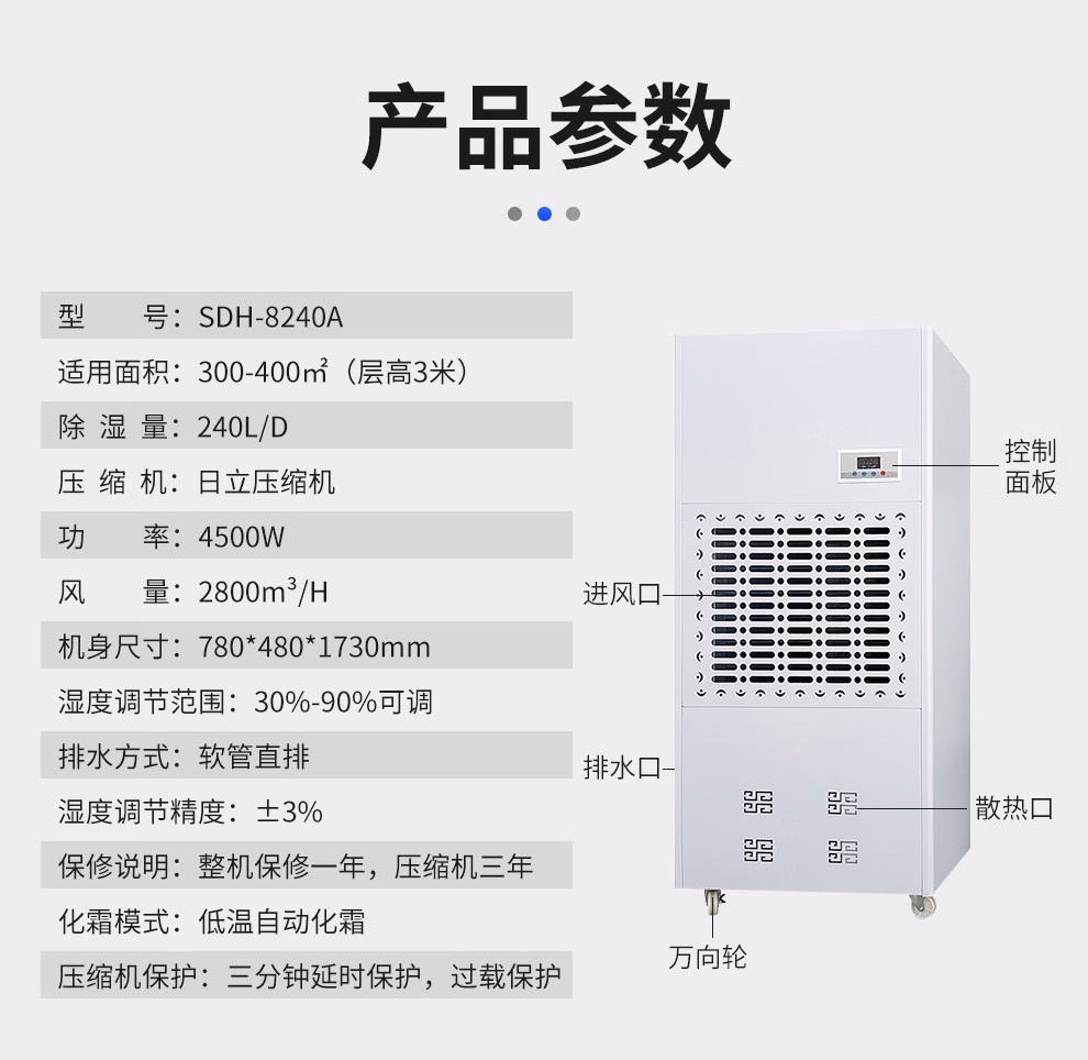 • 商品名称:湿井电器(wetwells) 湿井工业除湿机SDH 8240A仓库地下室家用商用除湿器