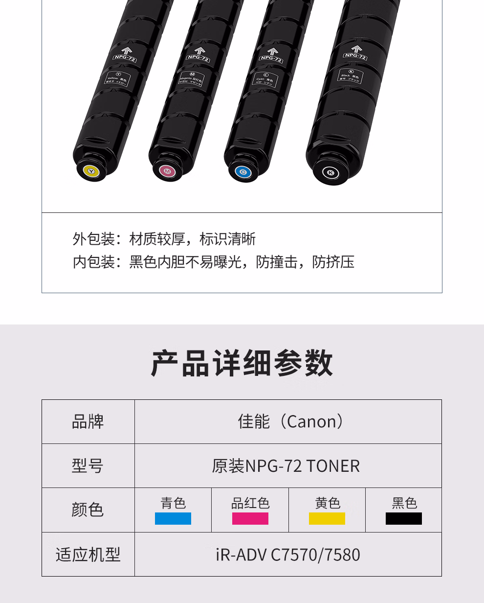 佳能(Canon) NPG-72 Toner Y 约66500页 适用iR-ADV C7570 墨粉盒 1.00 只/支 (计价单位:支) 黄色