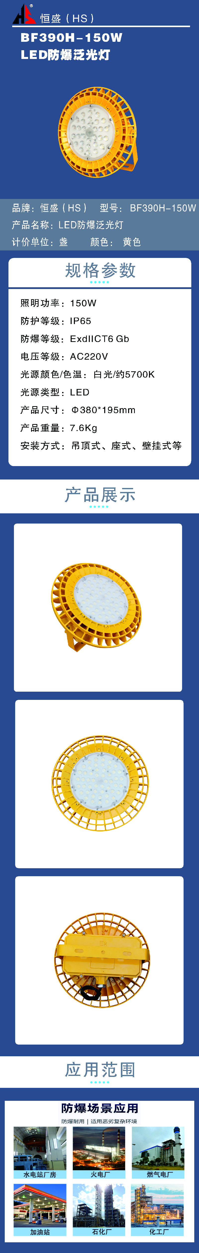 恒盛(HS) BF390H-150W 150W IP65 ExdIICT6 Gb AC220V 白光/约5700K LED LED防爆泛光灯 (计价单位:盏) 黄色