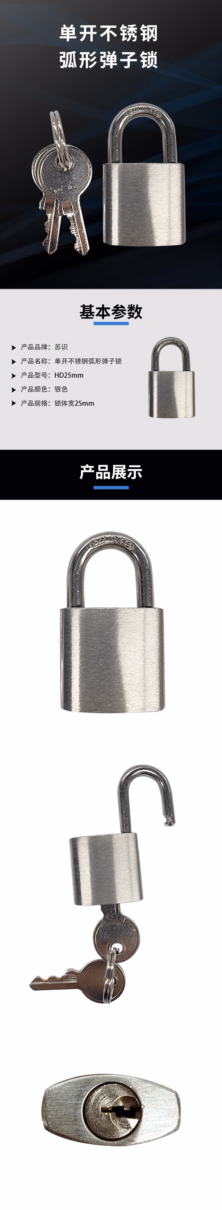• 商品名称:苏识 HD25mm 单开 不锈钢弧形弹子锁 (计价单位:个) 银色