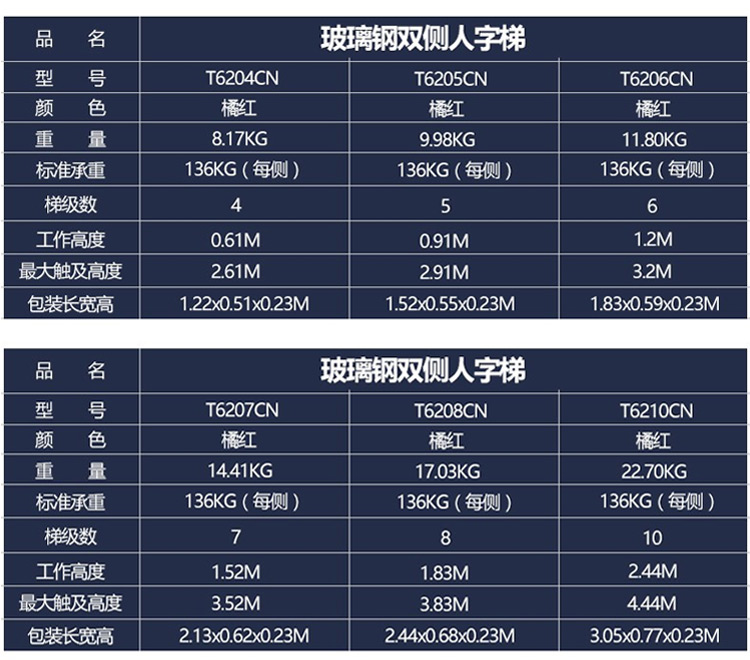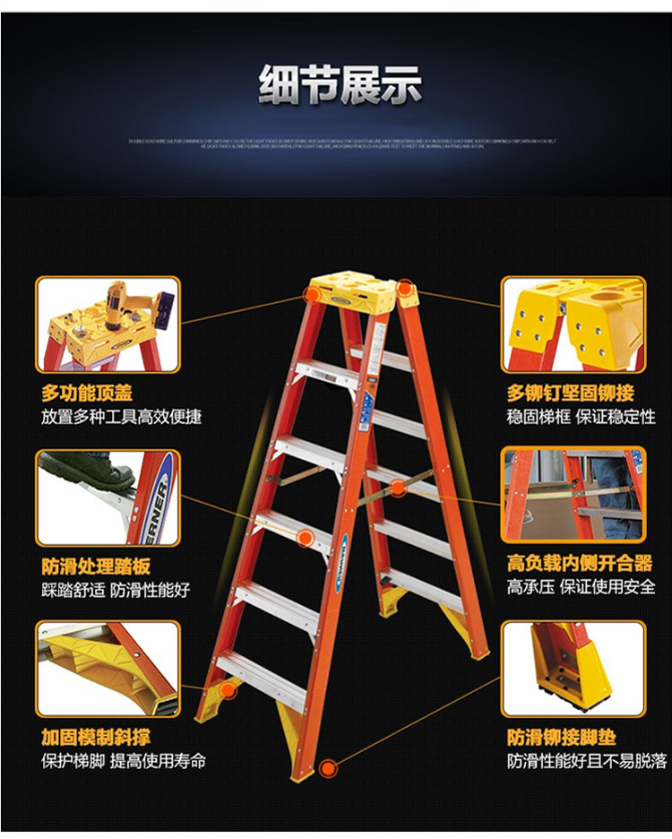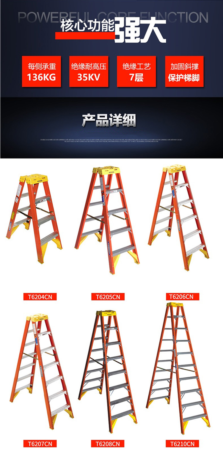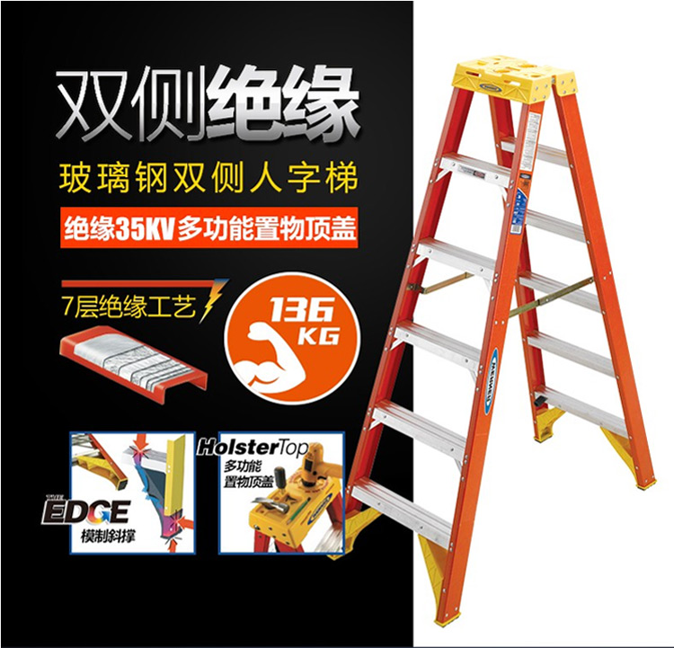 稳耐4步玻璃钢双侧人字梯 梯长1.2米型号T6204CN 承重136kg 单位:把