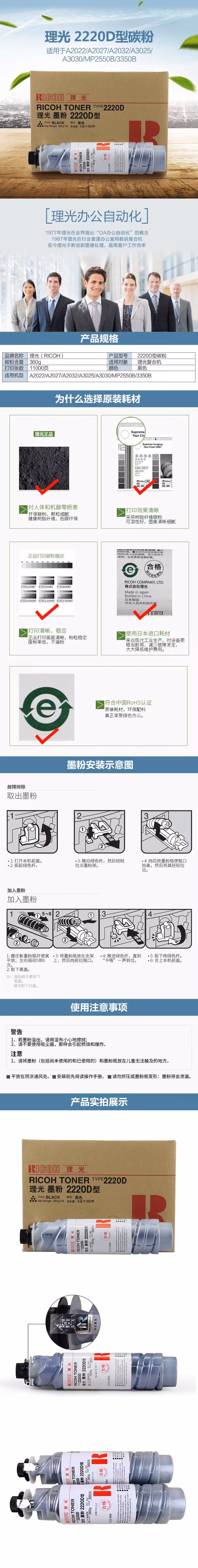 理光(Ricoh) 2220D 11000页 适用A2022 A2027 墨粉盒 1.00 只/支 (计价单位:支) 黑色