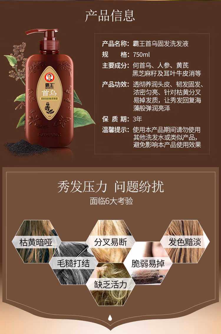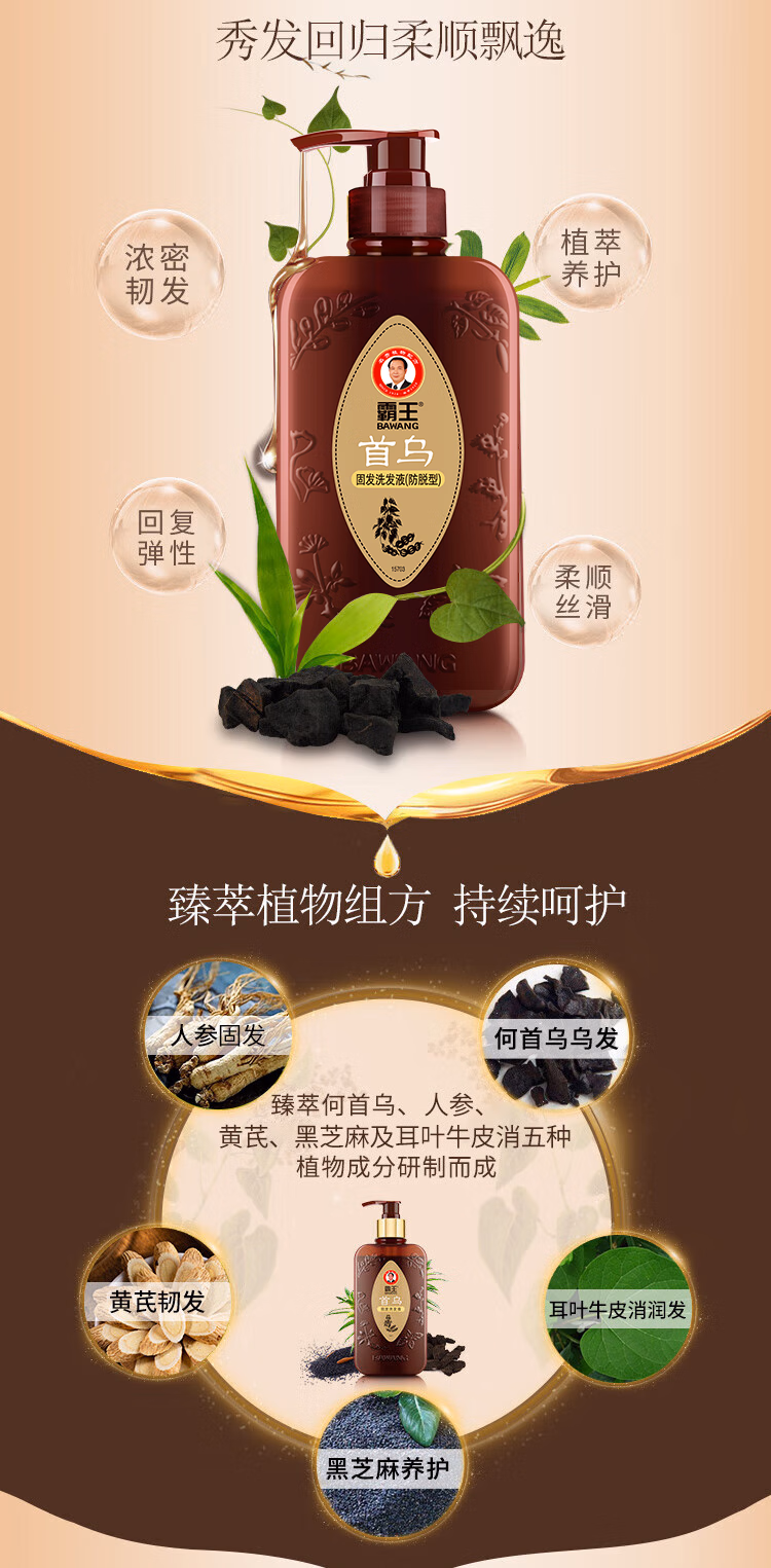 • 商品名称:霸王防脱发育发洗发水控油蓬松洗发露男女士洗头膏亮泽护发洗发液 400ml霸王首乌固发洗发液