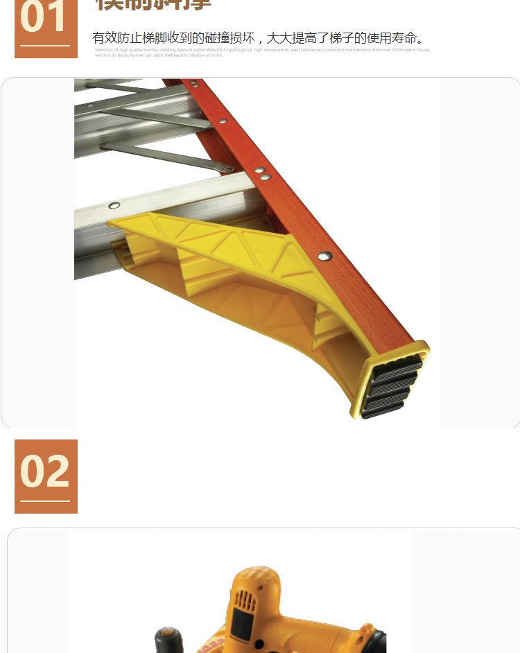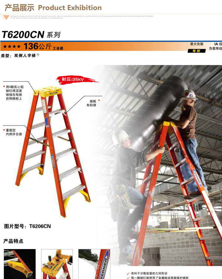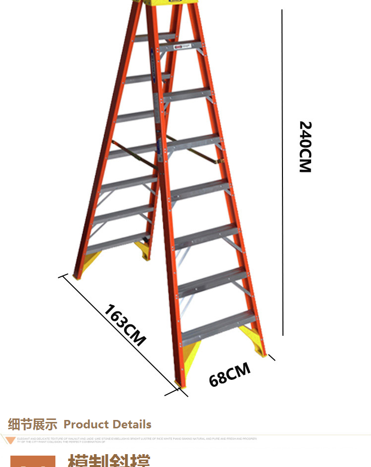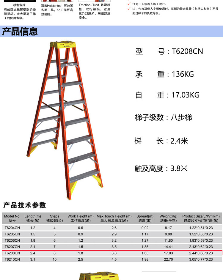 稳耐8步玻璃钢双侧人字梯 梯长2.4米型号T6208CN 承重136kg 单位:把