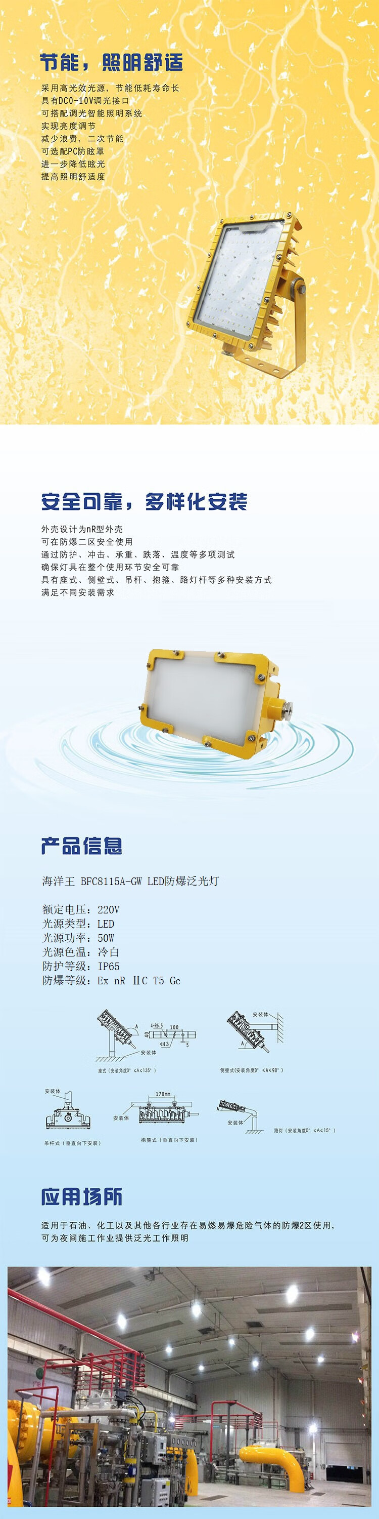 海洋王 BFC8115A-GW 50W IP65 Ex nR ⅡC T5 Gc 220V 冷白 LED LED防爆泛光灯 (计价单位:盏) 黄色
