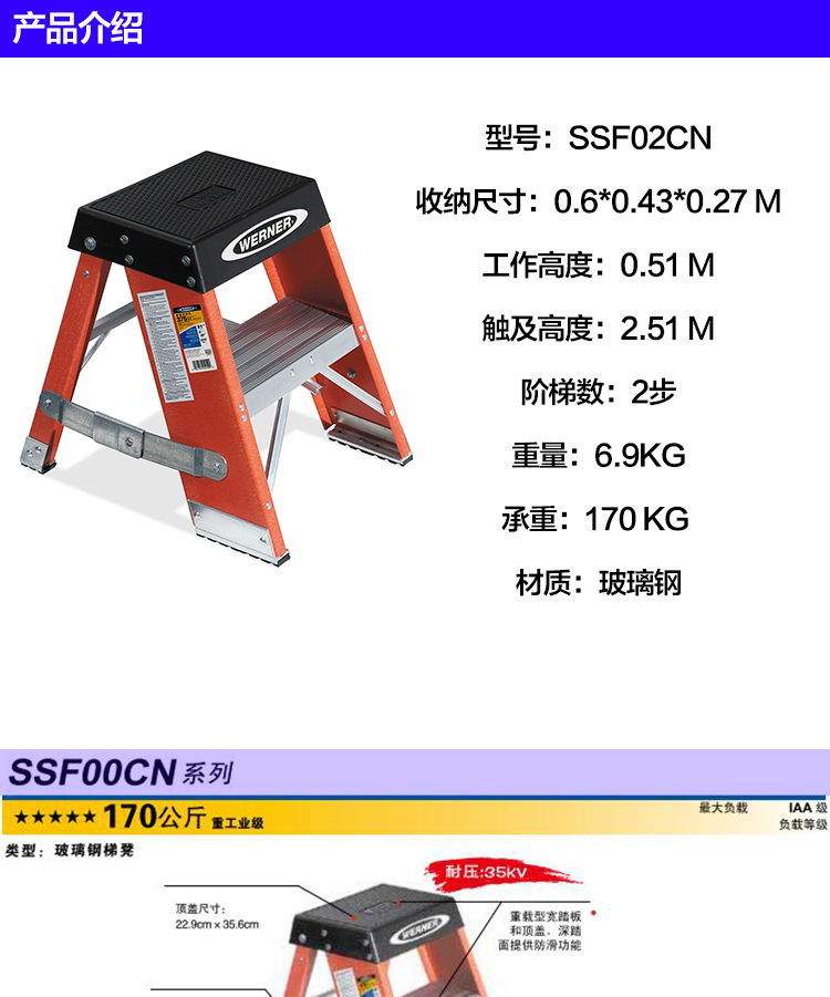 稳耐2步玻璃钢梯凳 平台高0.51米 型号SSF02 承重170kg 单位:把