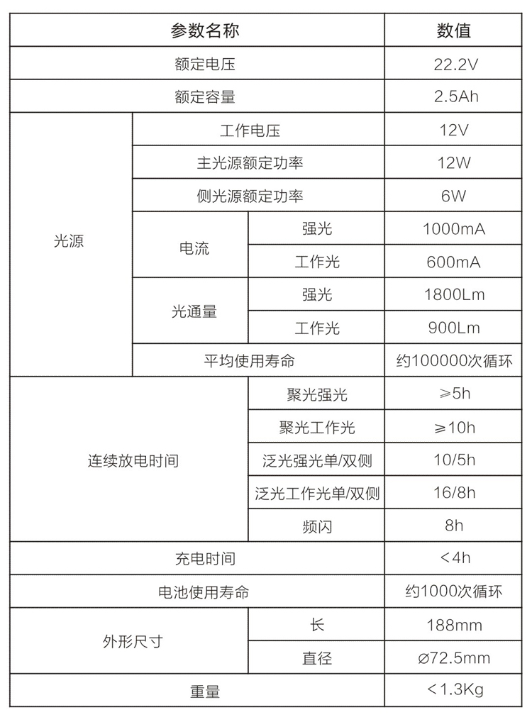 ● 聚光,泛光,红蓝警示多种工作模式,广泛适用于搜索、现场作业照明示等多种场景使用;