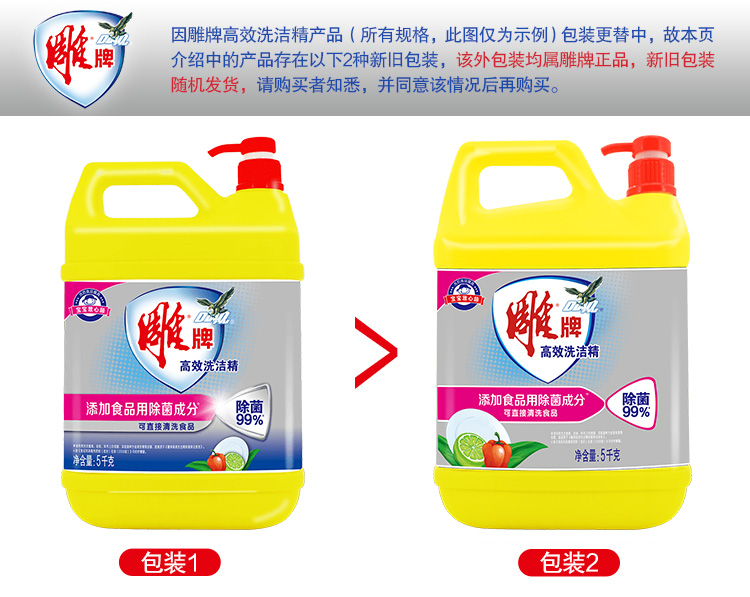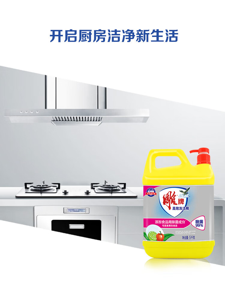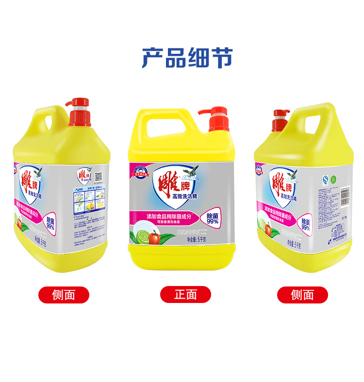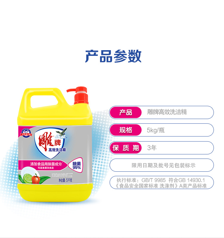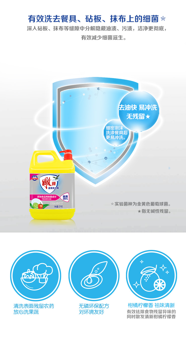 雕牌 高效洗洁精5kg 除菌率99% 餐具/食品通用 单位:瓶