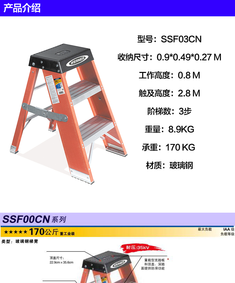 稳耐3步玻璃钢梯凳 平台高0.76米 型号SSF03 承重170kg 单位:把