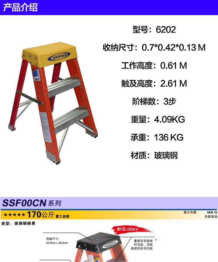 稳耐2步铝合金梯凳 平台高0.61米 型号6202 承重136kg