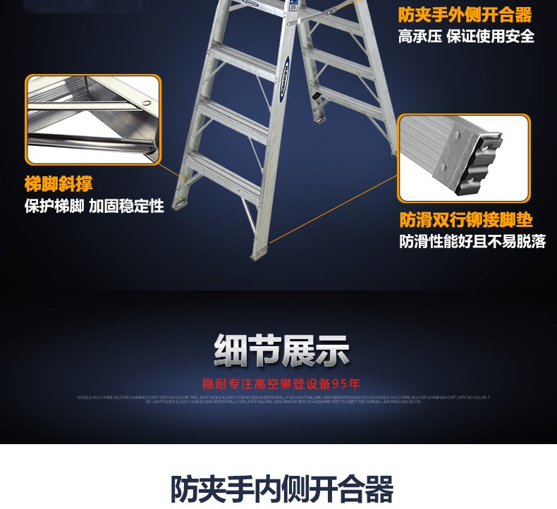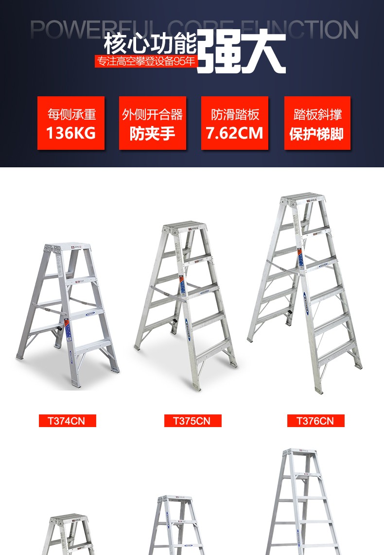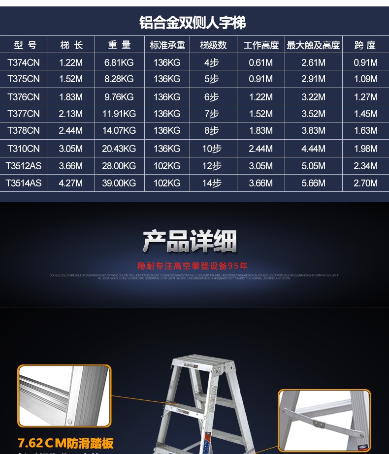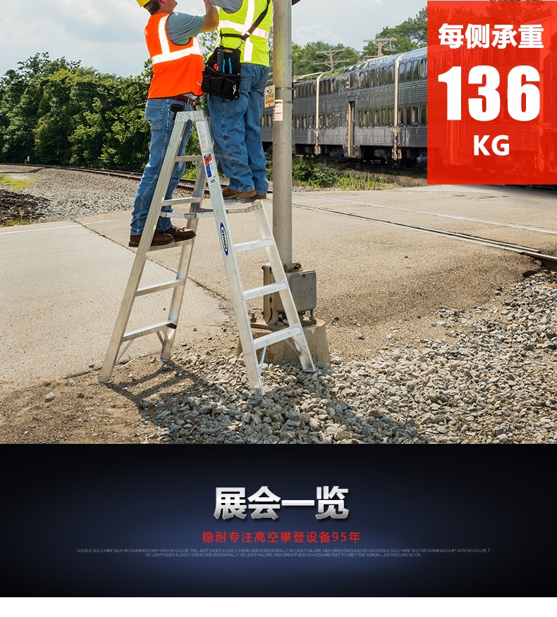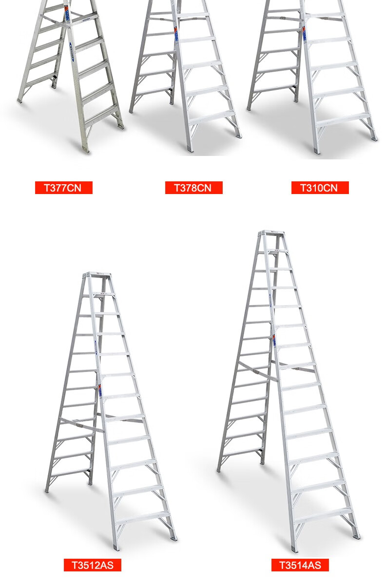 稳耐14步铝合金双侧人字梯 梯长4.2米型号T3514AS 承重102kg