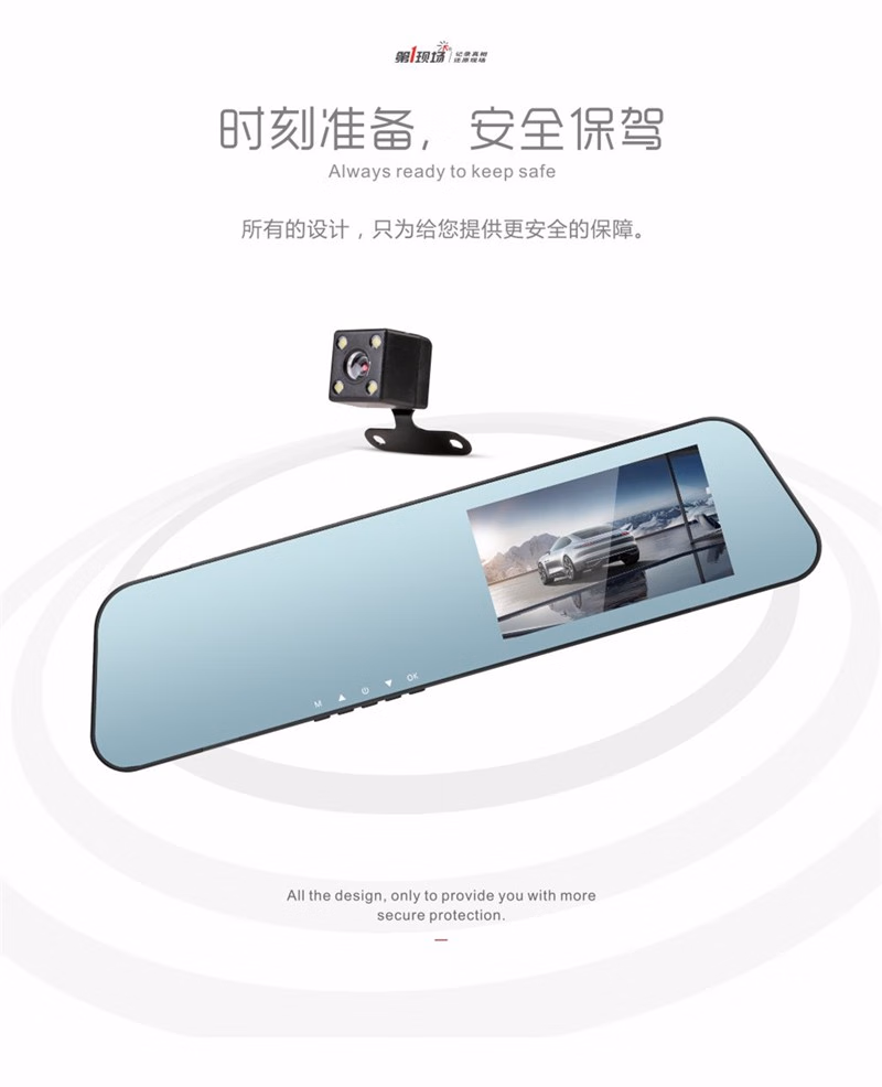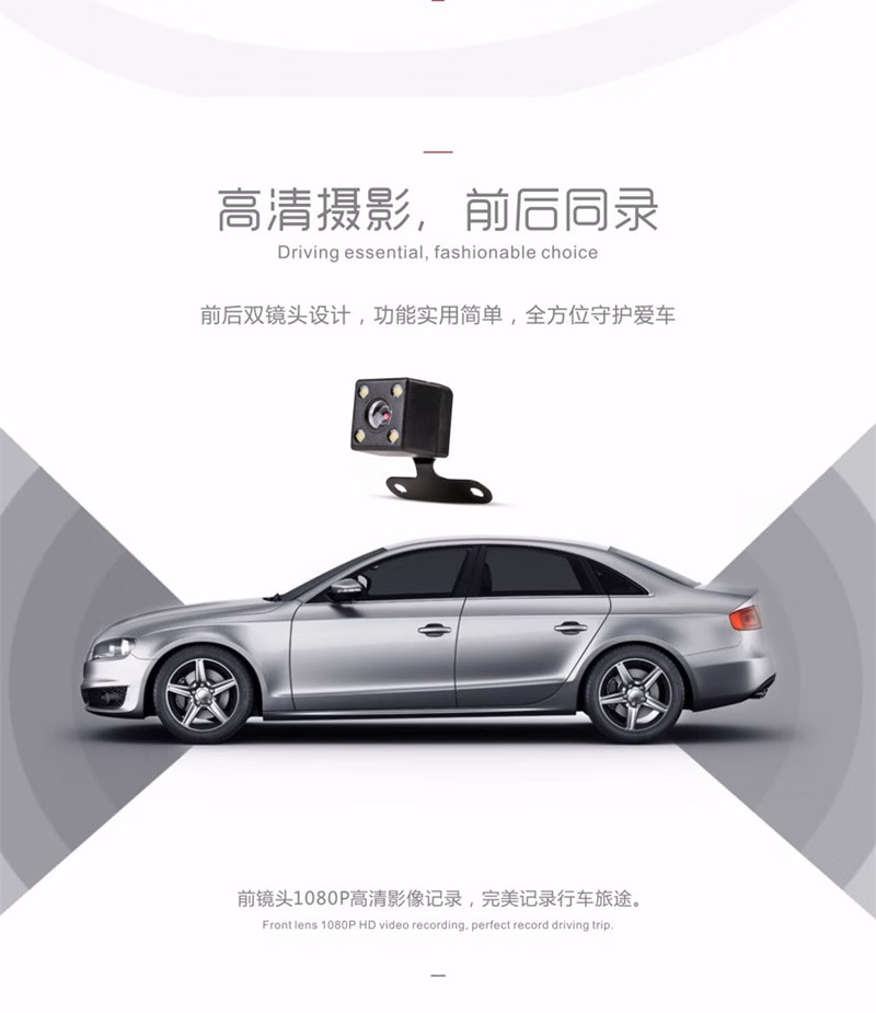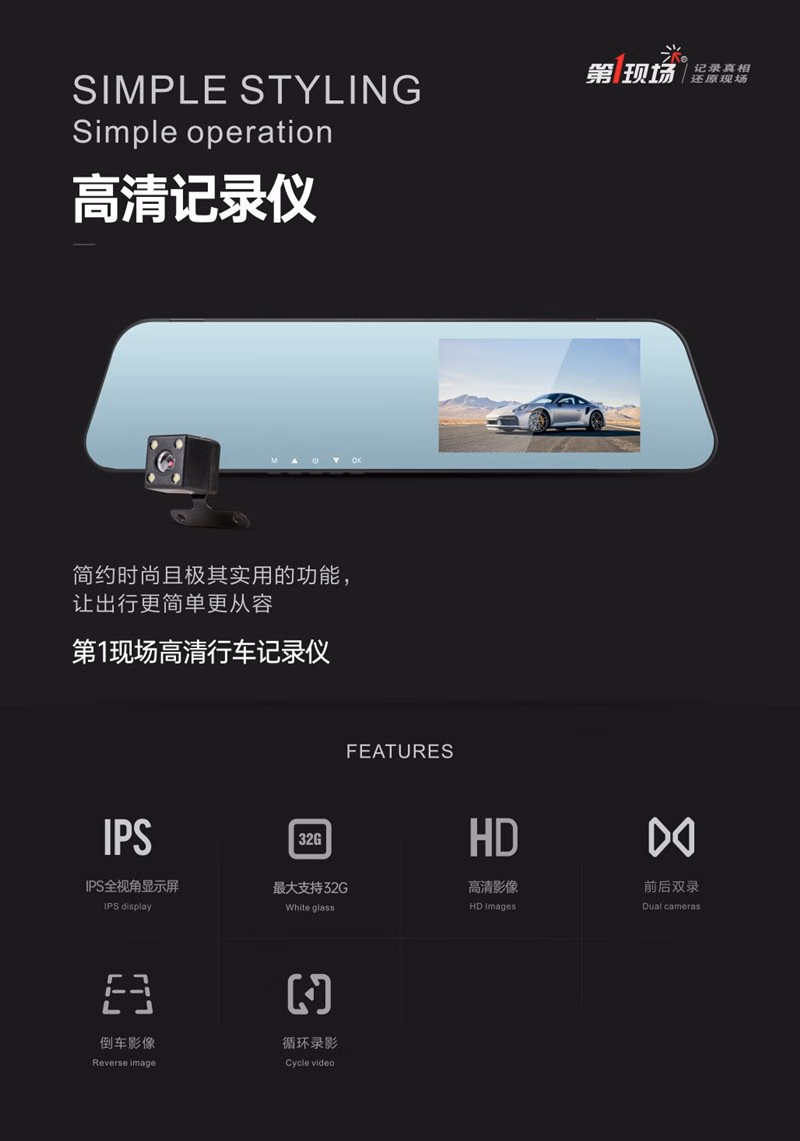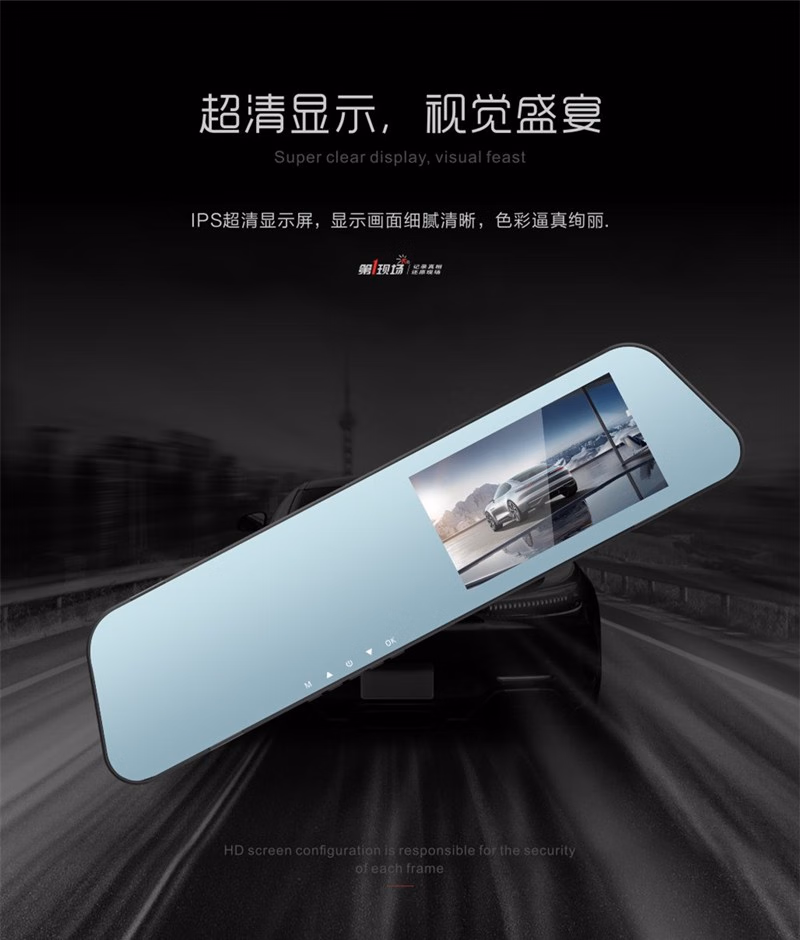 第1现场 高清行车记录仪D3000 前后双录 双镜头1080P 4.3英寸屏 170度广角 官方标配+32G专用高速内存卡